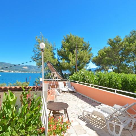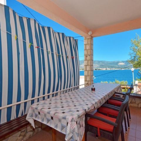 Fully equipped apartments in a quiet area of Trogir, located first row to the sea, 3 kilometers from the city center. The bus stop is 20 meters from the building, the boat harbor is 50 meters away, the restaurant is 100 meters away, and the shop is 150 meters away. Here you can enjoy the tranquility, while just 3 kilometers away in the center of Trogir you can enjoy a rich nightlife. You will surely enjoy it!