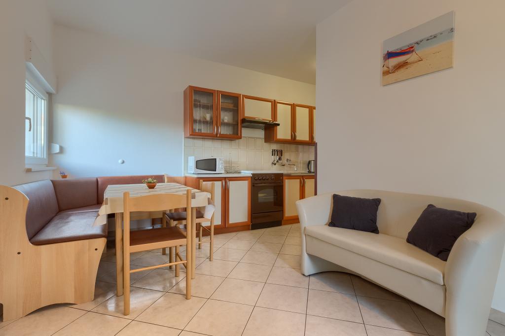 Apartments Roberto are located in the south of the Istrian peninsula in the small tourist fishing village of Banjole, 10 km from Pula. The apartments are richly and modernly equipped and are located 100 m from the sea and 200 m from the beach. In the vicinity of the building there is a pizzeria and a restaurant, a tennis court and a seaport. Banjole is a peaceful and quiet place without too much stress, beautiful nature and clear sea. There are 600 inhabitants in Banjole. Only 10 km from Banjol is the city of Pula, and 5 km from Banjol is Cape Kamenjak, a protected landscape with the most beautiful beaches in Istria.