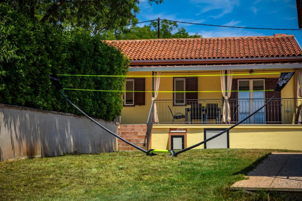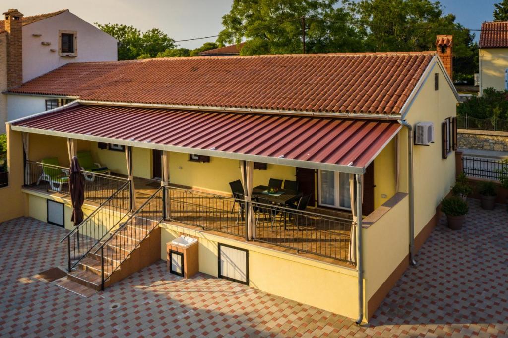 Holiday house with 700 m2 garden in Vinkuran, a small town near Pula, Pješčana Uvala and Medulin. Great for families, sports fans and all those looking for a quiet vacation. The house has 2 bedrooms and can accommodate 6 people (4 plus 2). Completely renovated, it has a spacious living room with a kitchen and a large terrace with a barbecue. In front of the house there is a large closed parking lot with plenty of space for your trailer / bikes and more. Guests can access all parts of the house and the large yard with parking