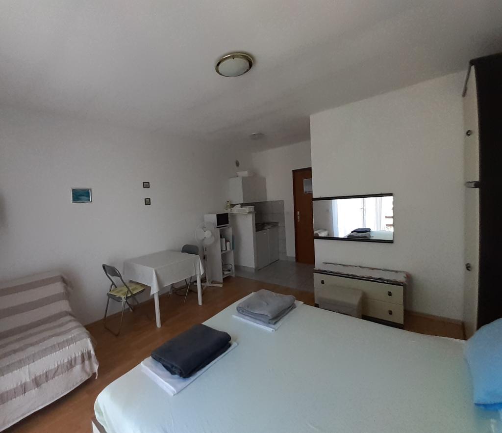 The studio is very clean, beautiful, functional decorated and spacious enough. It is enough container kuhanje- intelligently selected, with the addition of sandwich toaster, kettle and coffee maker. From the balcony through the dense tree work enough shade offers a stunning view of the sea. The house is close to the beach. Owners very friendly and unobtrusive.