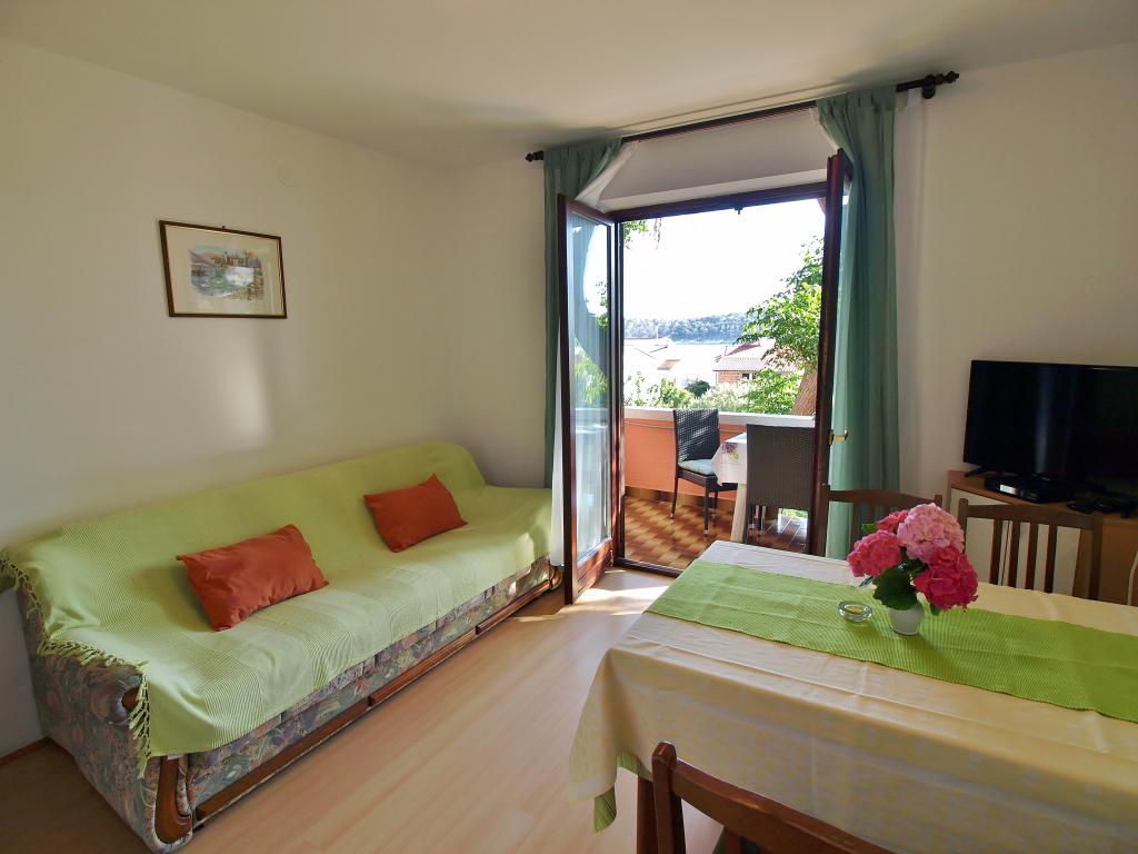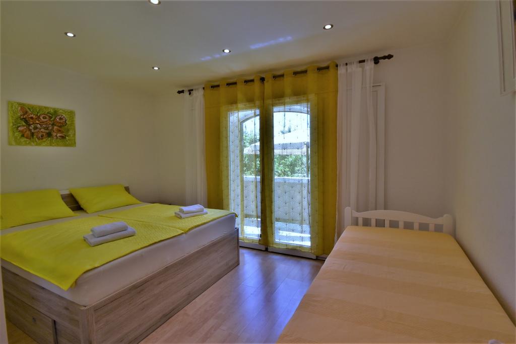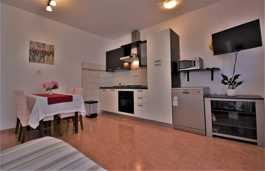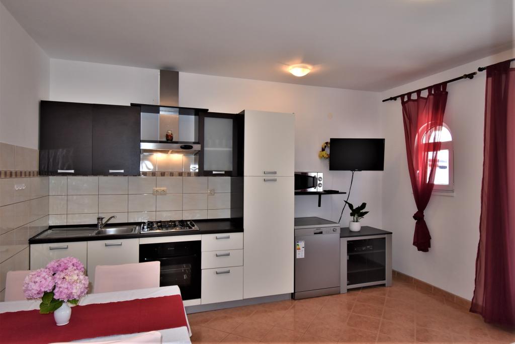 The house is located on the island of Rab, in the town of Barbat, close to the sea. We are only 50 meters away from the sea. The apartment consists of two double rooms with a double bed, kitchen with dining room and living room, bathroom. The apartment is 56 m2. The apartment is located on the ground floor and has a large terrace in the shade, an outdoor grill and an area for sitting and socializing in the evening.