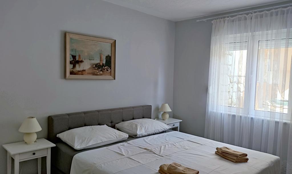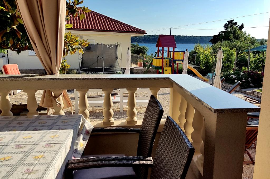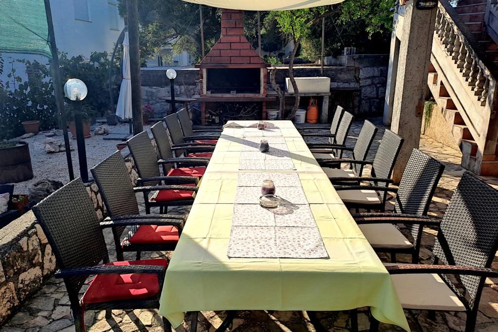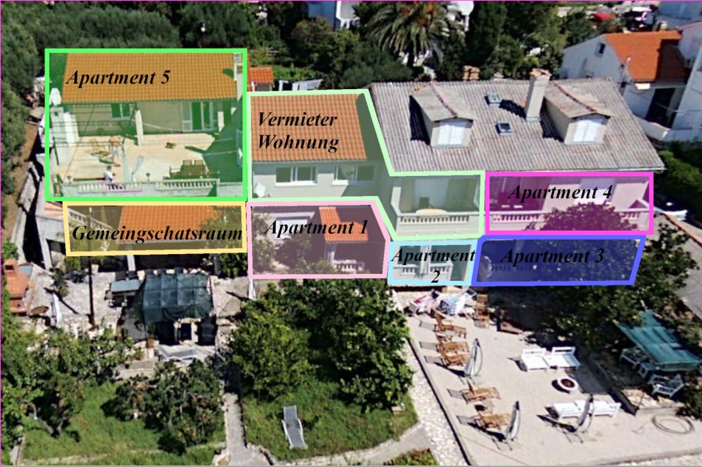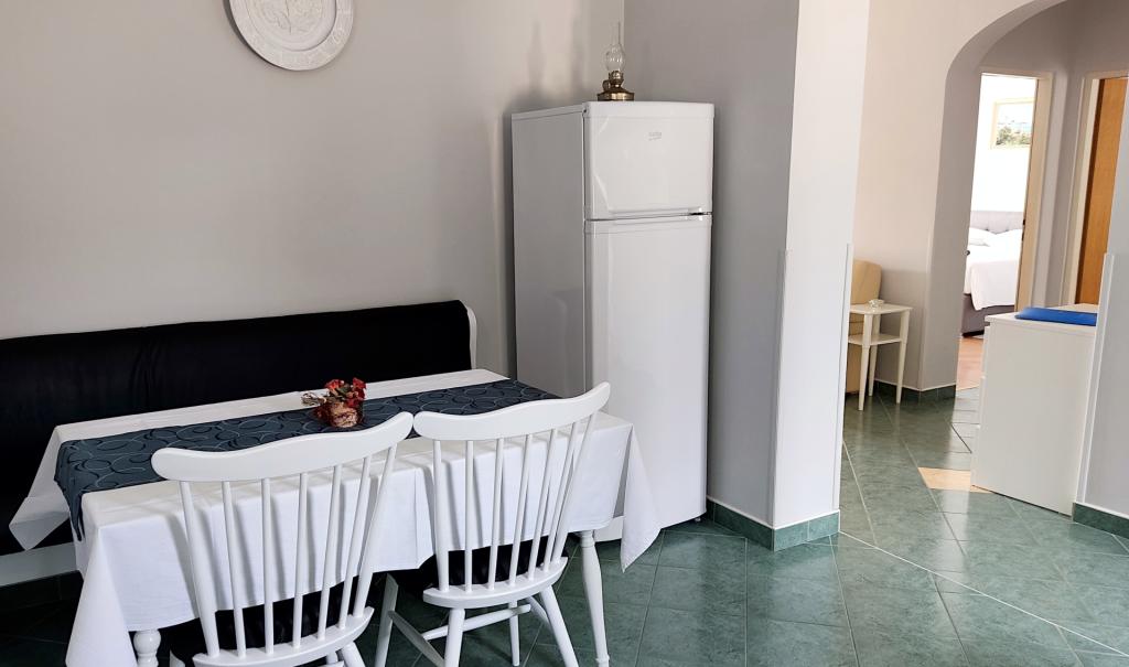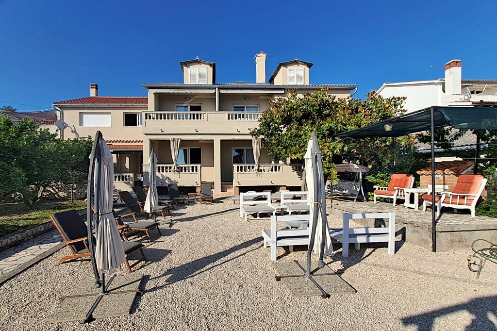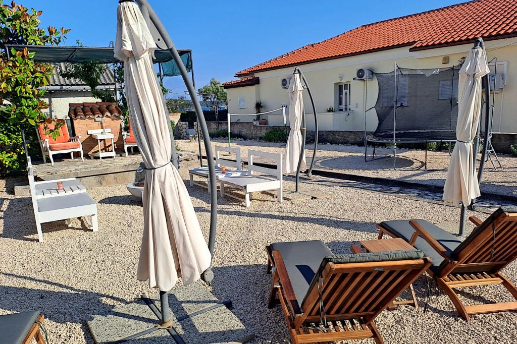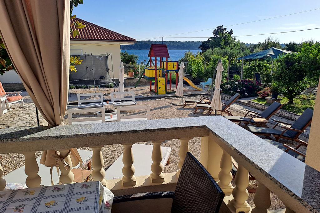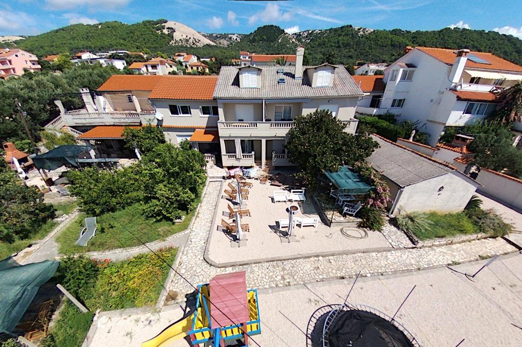 Apartments 30 m from the sea, free mooring for the vessel. The house owned by the family Snježana and Slobodan (Bobo) Frankić is located in Barbat on the island of Rab, 4 km from the town of Rab and 6 km from the ferry. It was built as a one-story building with five apartments for rent, a common room for entertainment and one apartment where the hosts live. The house is located in a quiet area, in a beautiful residential area, it is only 30 meters from the sea and is surrounded by a parking lot, a flower garden, an orchard, a sunny terrace with deckchairs, a playground for children and adults, and a common terrace. There are five apartments for 4 people: Apartment 1, Apartment 3, Apartment 4, Apartment 5 and one apartment for 2 people: Apartment 2. Two apartments for 4 people: Apartment 1, Apartment 3 and one apartment for 2 people: Apartment 2 are located on the ground floor, and two apartments for four people: Apartment 4, Apartment 5 on the first floor (hosts and rented Apartment 5 share a terrace). All apartments have air conditioning. Free WiFi
