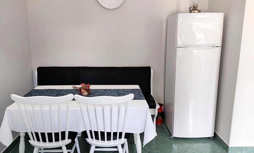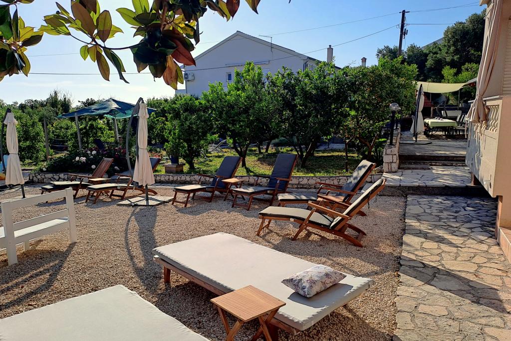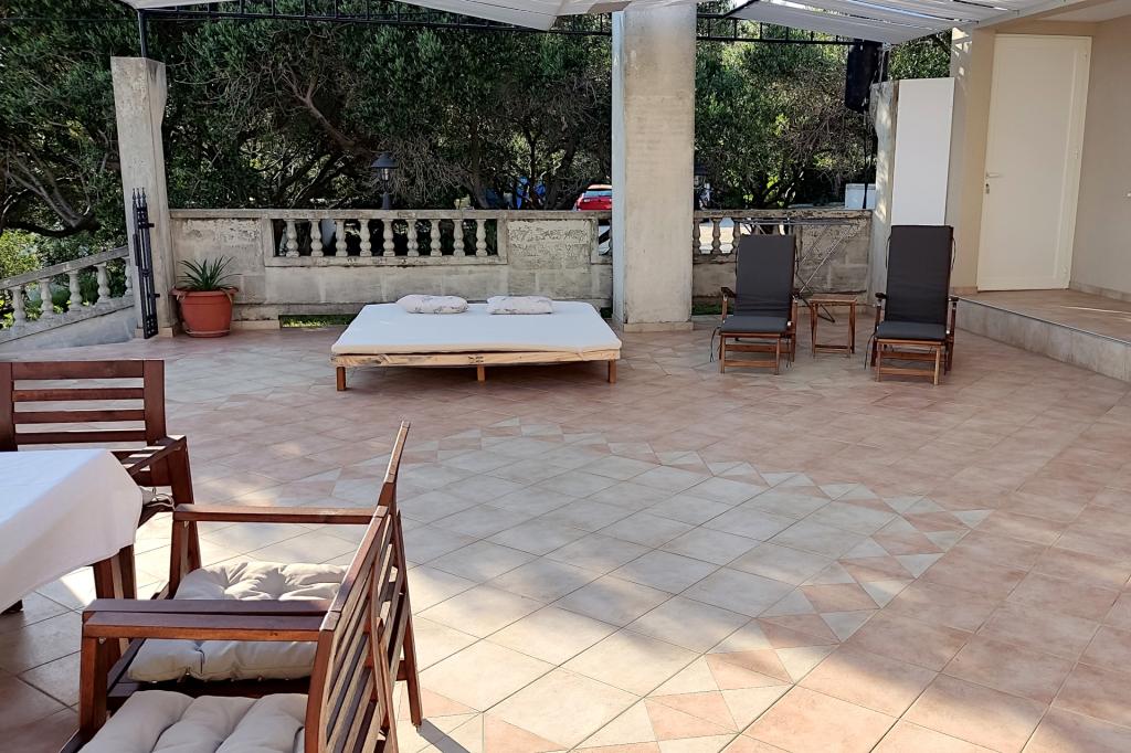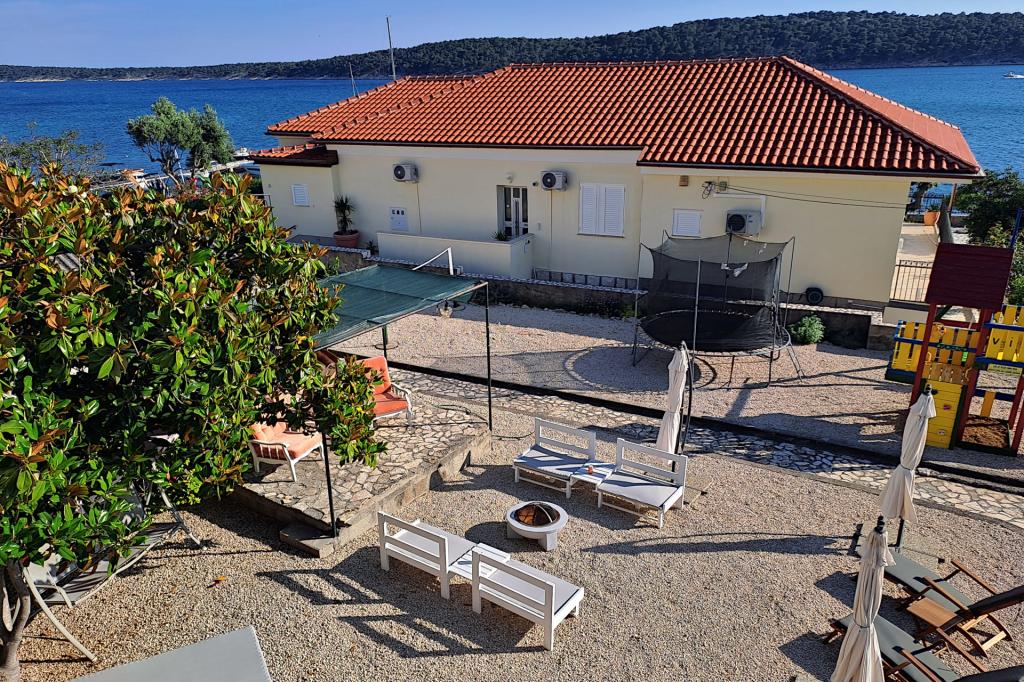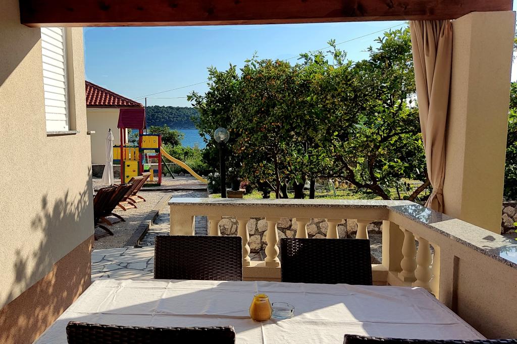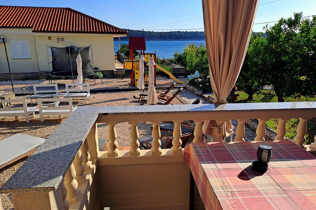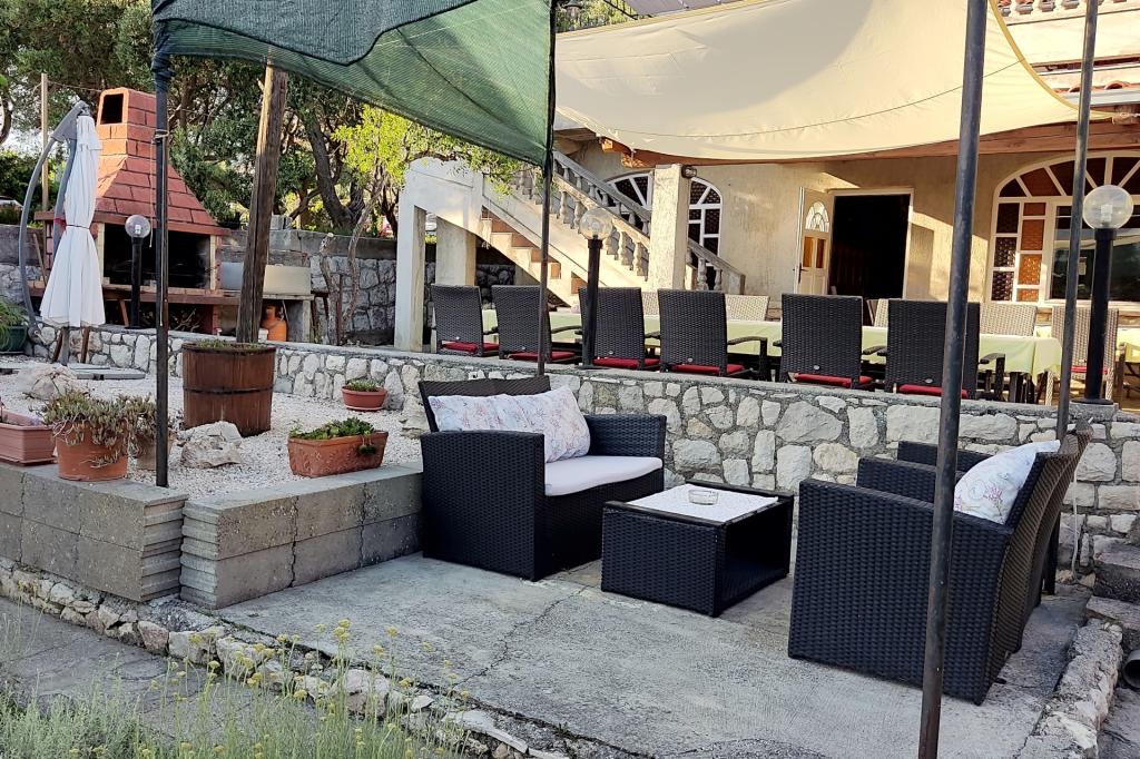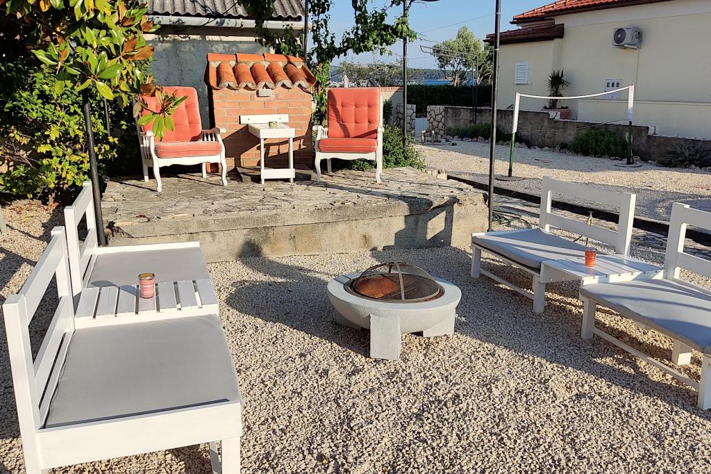 Apartments 30 m from the sea, free mooring for the vessel. The house owned by the family Snježana and Slobodan (Bobo) Frankić is located in Barbat on the island of Rab, 4 km from the town of Rab and 6 km from the ferry. It was built as a one-story building with five apartments for rent, a common room for entertainment and one apartment where the hosts live. The house is located in a quiet area, in a beautiful residential area, it is only 30 meters from the sea and is surrounded by a parking lot, a flower garden, an orchard, a sunny terrace with deckchairs, a playground for children and adults, and a common terrace. There are five apartments for 4 people: Apartment 1, Apartment 3, Apartment 4, Apartment 5 and one apartment for 2 people: Apartment 2. Two apartments for 4 people: Apartment 1, Apartment 3 and one apartment for 2 people: Apartment 2 are located on the ground floor, and two apartments for four people: Apartment 4, Apartment 5 on the first floor (hosts and rented Apartment 5 share a terrace). All apartments have air conditioning. Free WiFi