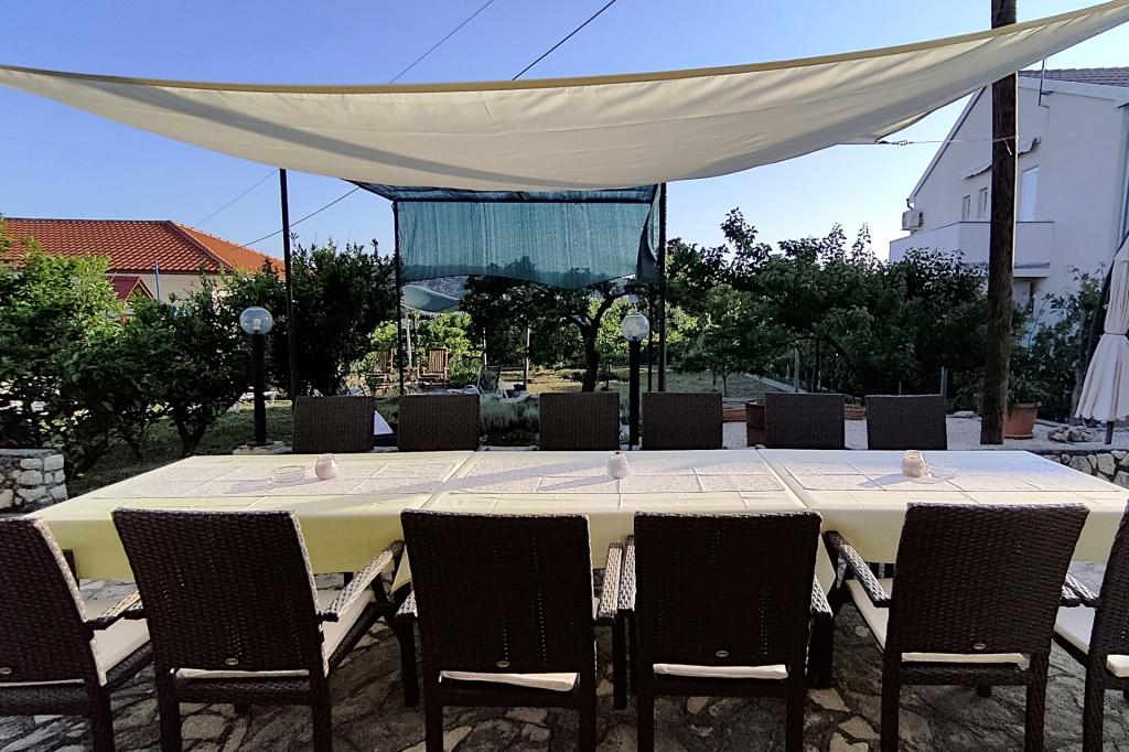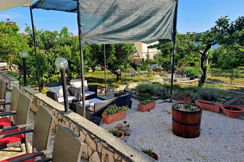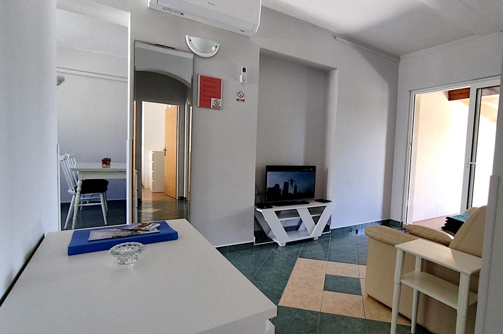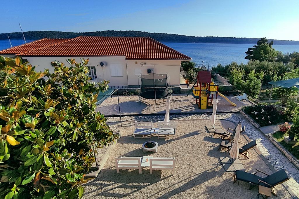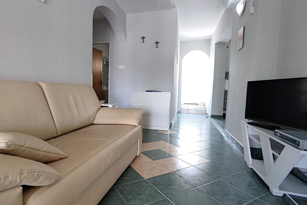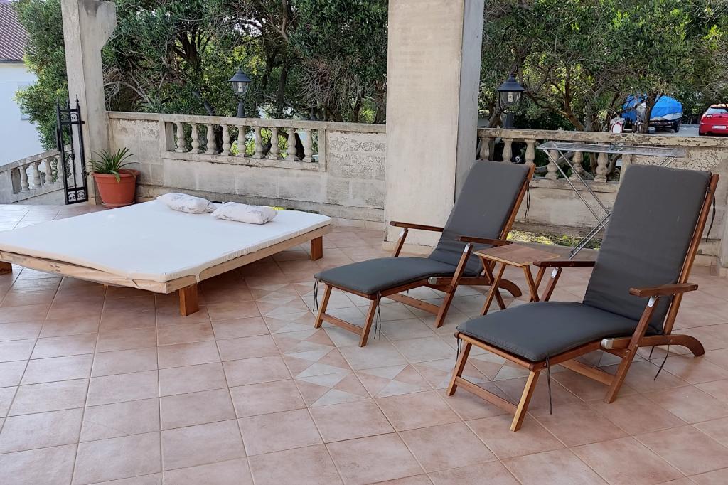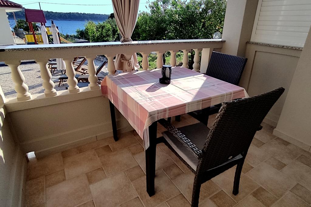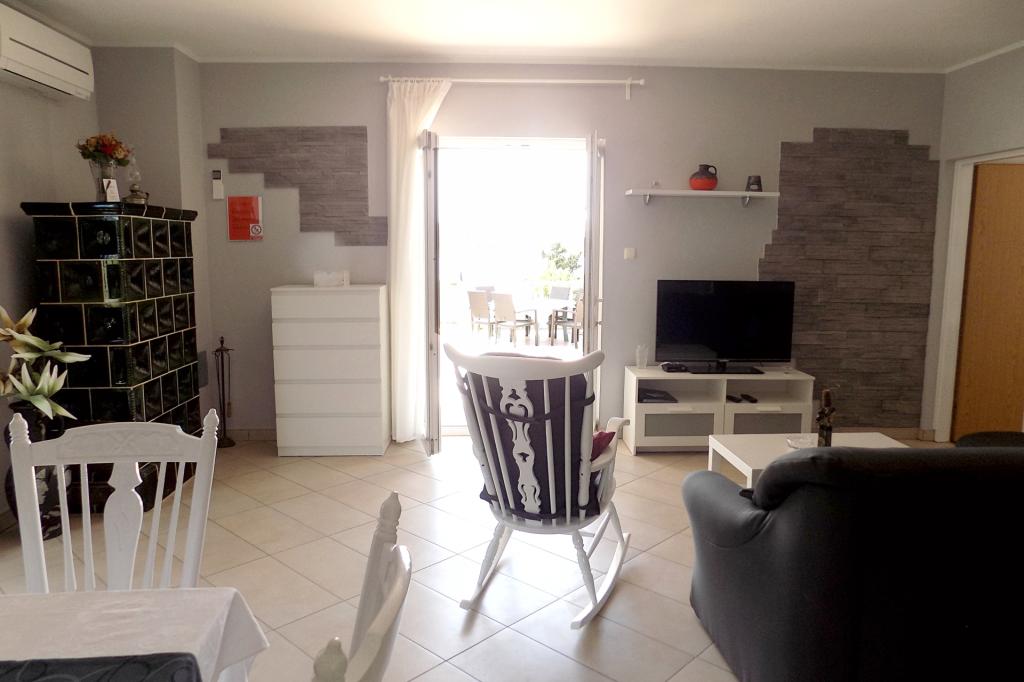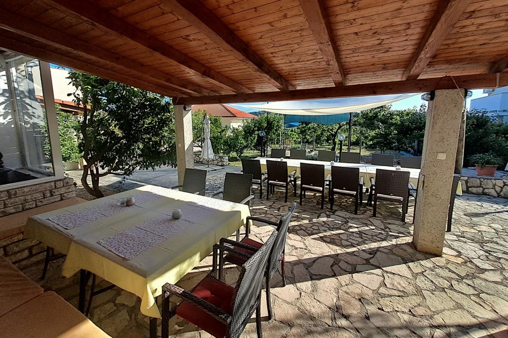 Apartments 30 m from the sea, free mooring for the vessel. The house owned by the family Snježana and Slobodan (Bobo) Frankić is located in Barbat on the island of Rab, 4 km from the town of Rab and 6 km from the ferry. It was built as a one-story building with five apartments for rent, a common room for entertainment and one apartment where the hosts live. The house is located in a quiet area, in a beautiful residential area, it is only 30 meters from the sea and is surrounded by a parking lot, a flower garden, an orchard, a sunny terrace with deckchairs, a playground for children and adults, and a common terrace. There are five apartments for 4 people: Apartment 1, Apartment 3, Apartment 4, Apartment 5 and one apartment for 2 people: Apartment 2. Two apartments for 4 people: Apartment 1, Apartment 3 and one apartment for 2 people: Apartment 2 are located on the ground floor, and two apartments for four people: Apartment 4, Apartment 5 on the first floor (hosts and rented Apartment 5 share a terrace). All apartments have air conditioning. Free WiFi
