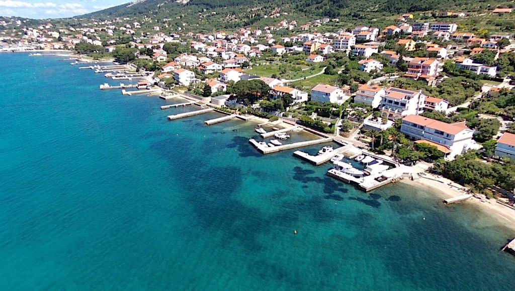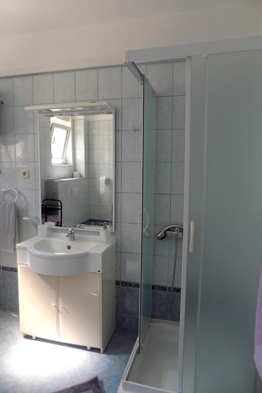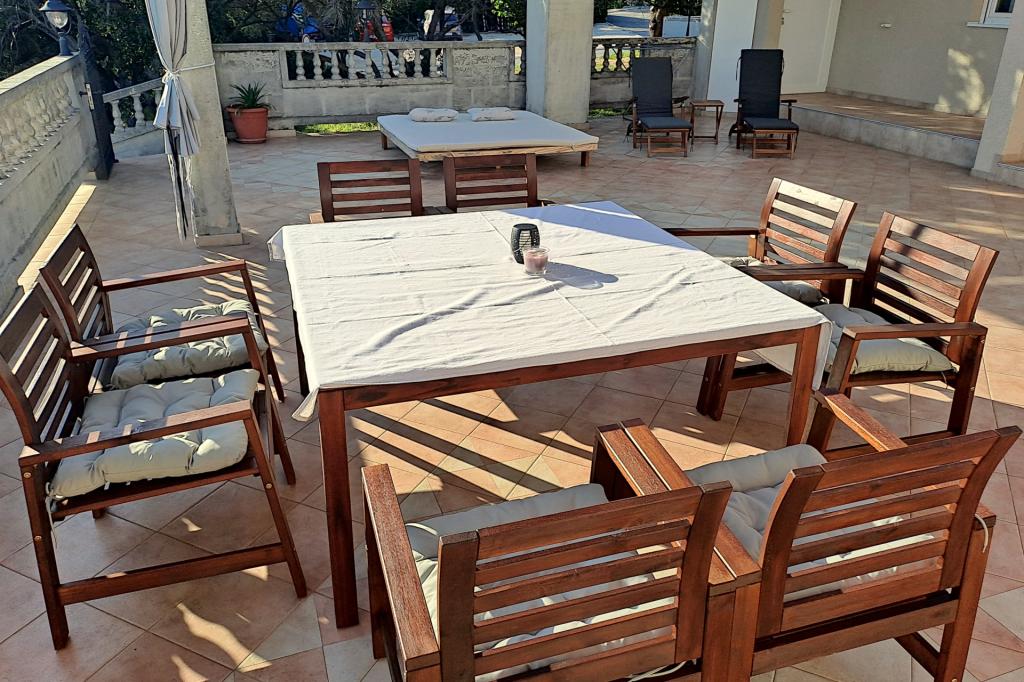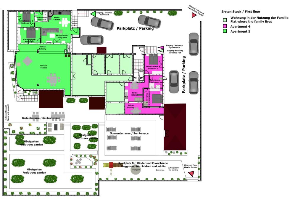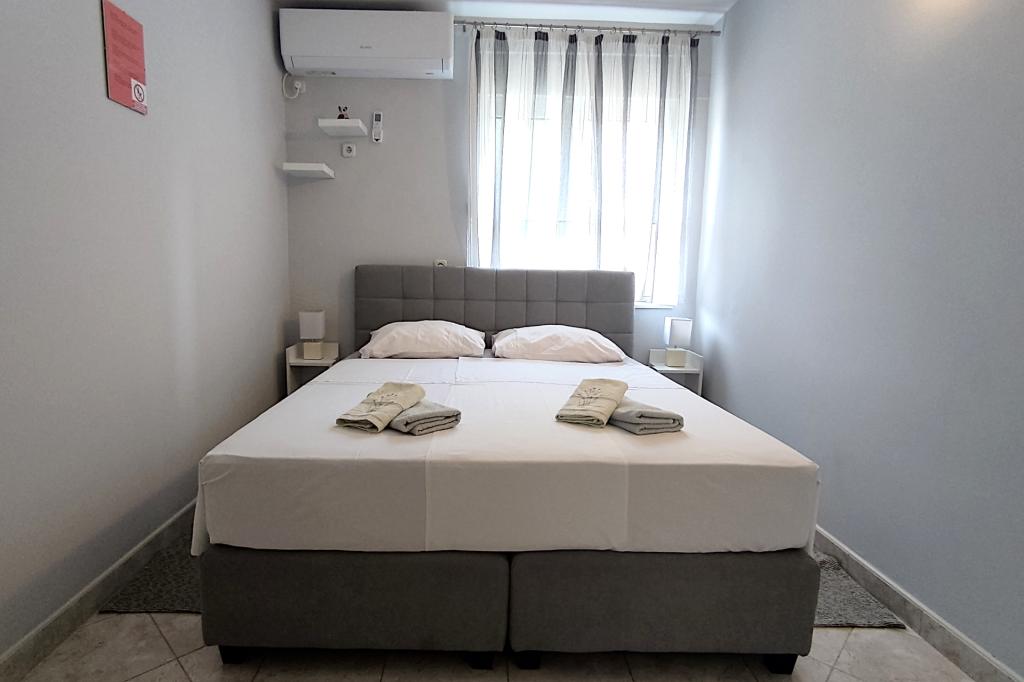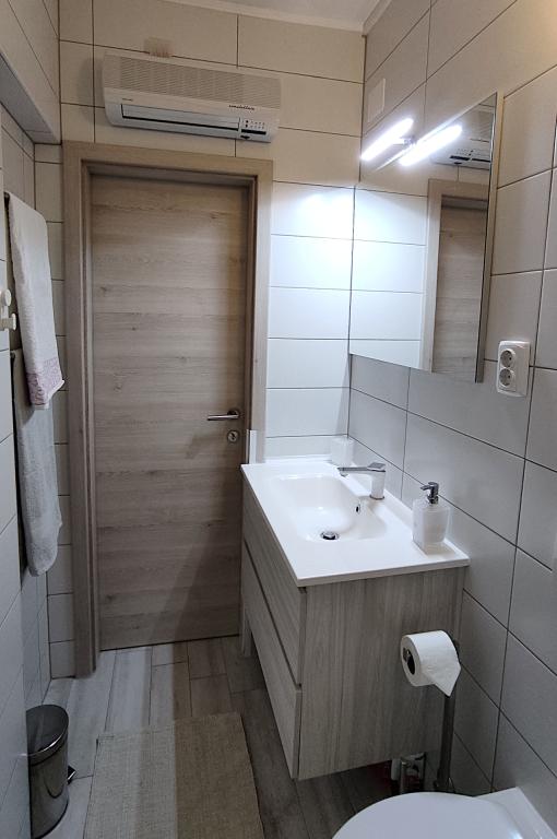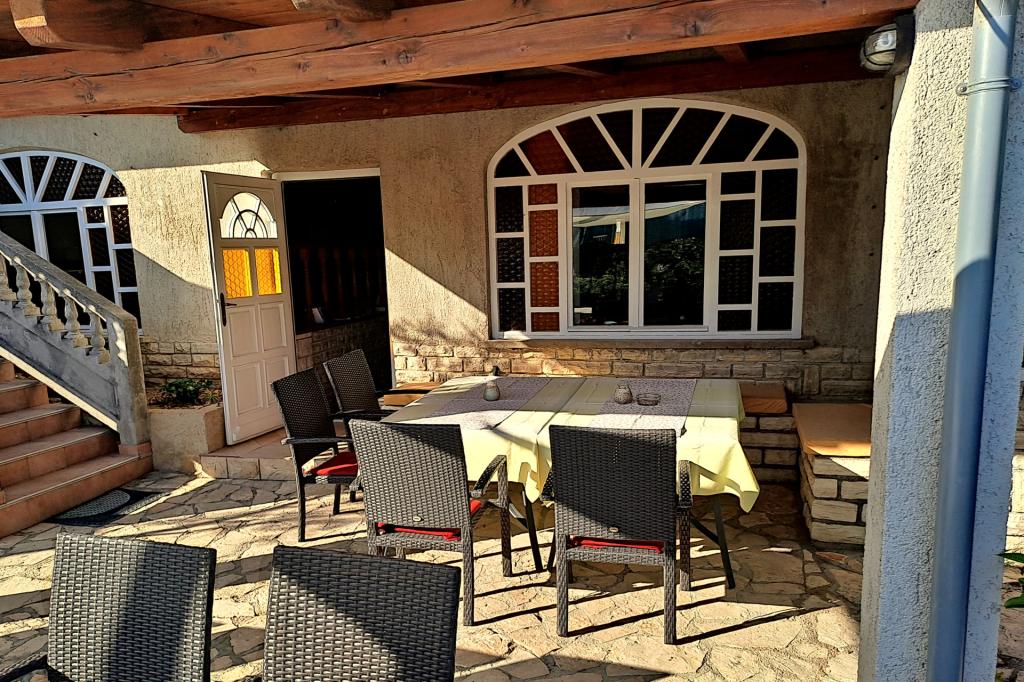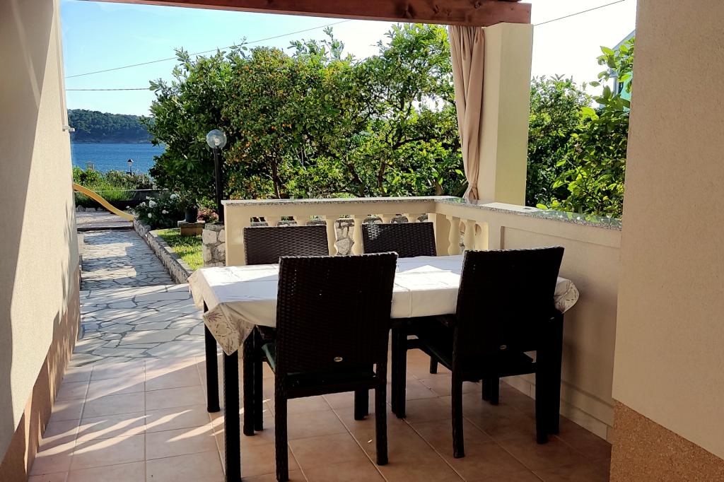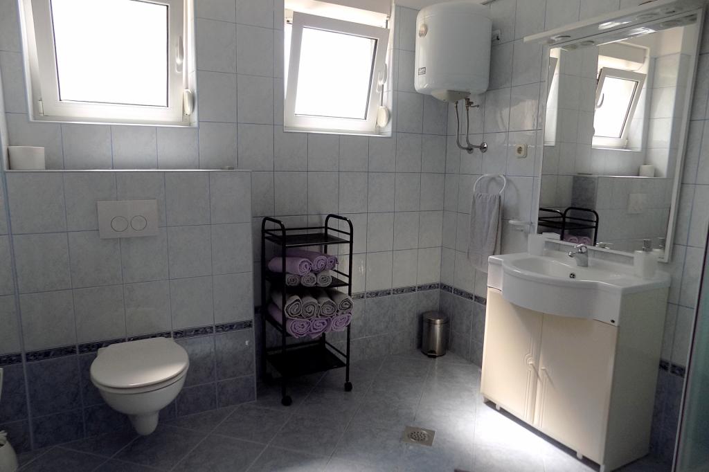 Apartments 30 m from the sea, free mooring for the vessel. The house owned by the family Snježana and Slobodan (Bobo) Frankić is located in Barbat on the island of Rab, 4 km from the town of Rab and 6 km from the ferry. It was built as a one-story building with five apartments for rent, a common room for entertainment and one apartment where the hosts live. The house is located in a quiet area, in a beautiful residential area, it is only 30 meters from the sea and is surrounded by a parking lot, a flower garden, an orchard, a sunny terrace with deckchairs, a playground for children and adults, and a common terrace. There are five apartments for 4 people: Apartment 1, Apartment 3, Apartment 4, Apartment 5 and one apartment for 2 people: Apartment 2. Two apartments for 4 people: Apartment 1, Apartment 3 and one apartment for 2 people: Apartment 2 are located on the ground floor, and two apartments for four people: Apartment 4, Apartment 5 on the first floor (hosts and rented Apartment 5 share a terrace). All apartments have air conditioning. Free WiFi