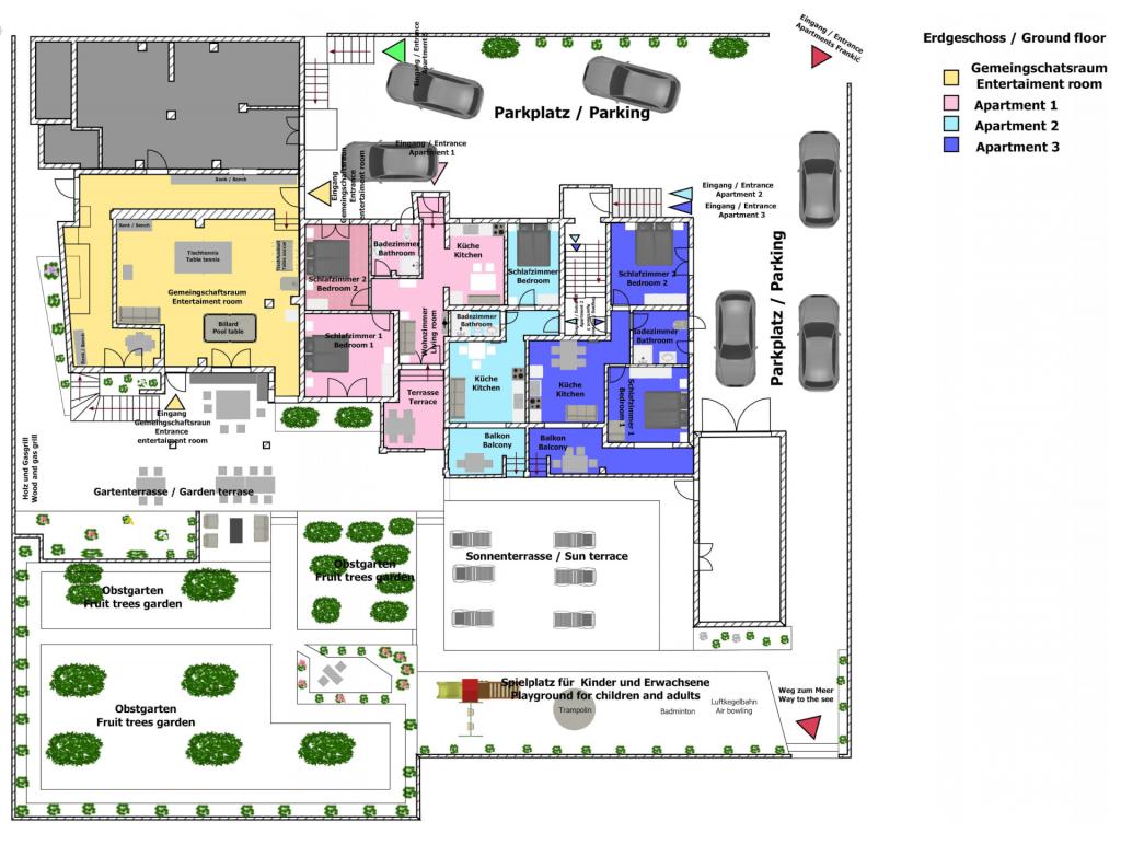 Garden terrace with wood and gas grill, garden furniture, umbrellas, outdoor gatherings, just waiting for you! There is nothing better than enjoying the outdoors in fine food and pleasant company. Relax and enjoy the sun on the deckchairs on the sun terrace. If you want some activity, there is a playground for children and adults in the garden. There is a trampoline, badminton and air bowling, and for your youngest members swings, a slide and sand for children. In the common room there is table tennis, billiards, electronic darts, table football and satellite TV. 30 meters from the house there is a small beach and free boat moorings on the pier. We use 5 moorings for the boat. You must announce the boat when booking. If you come with a trailer and a boat, please park the boat and trailer at the crane first. There is no place to turn on the narrow driveway to our house. Limitation of liability: We do not assume any responsibility for the connections and their condition. It is your responsibility as the boat owner to properly moor the boat.