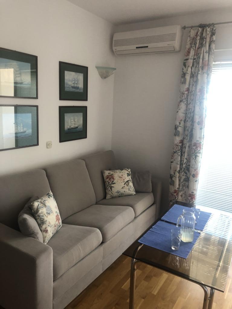The apartment is 45m large on the second floor and consists of a bedroom with a beautiful sea view, a living room with a sofa bed that instantly turns into a comfortable bed for two people, a fully equipped kitchen with a microwave, dishwasher, oven, coffee maker, toaster, kettle, bathroom with shower, washing machine and hairdryer, towels, satellite TV, air conditioning, W-LAN, safe, balcony with a sea view with awning, we have a garage space for parking your car, with the possibility of using bicycles.