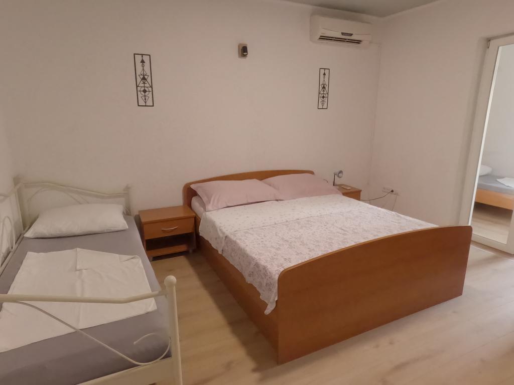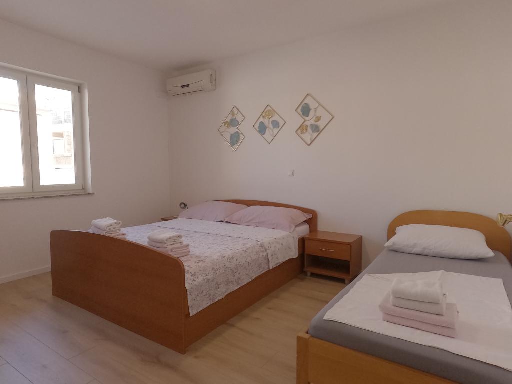 Apartment Katić is located in a quiet part of Baška Voda. The apartment we offer has a separate entrance and a secured parking space. The apartment is 400m from the beach and the center (5-10min walk). The apartment has an outdoor terrace with barbecue, kitchen with dining area, 2 bathrooms, 3 rooms each air-conditioned, designed for max 8 people (two families).