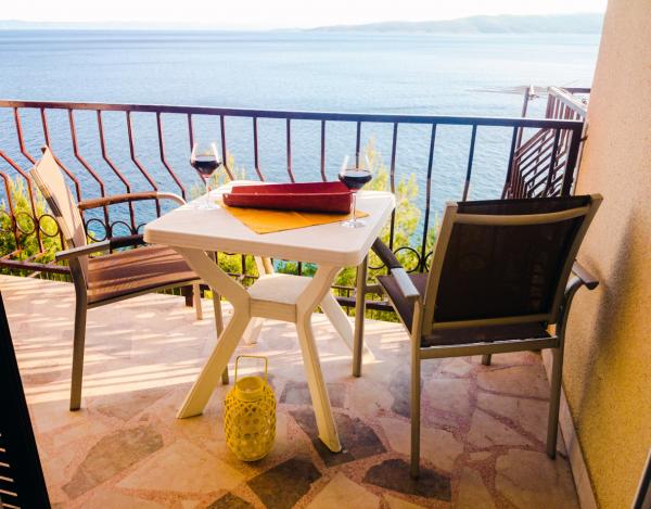 Studio Apartment Ujević is located in the residential part of Baška Voda - an area called Rogač surrounded by modern villas and family houses. We are located above the famous Ikovac beach. The Studio Apartment is suitable for a family vacation, romantic and honeymoon. The apartment has a balcony with an exceptional view of the sea and the islands of the central Dalmatian archipelago. The apartment has been completely renovated and fully equipped. We are away from the city bustle, noise and bustle.... A pleasant vacation is guaranteed by our many years of tourism. We have been here for you since 1982. Come and see for yourself, and above all - relax!!! The beach is reached by stairs. Ujević Family