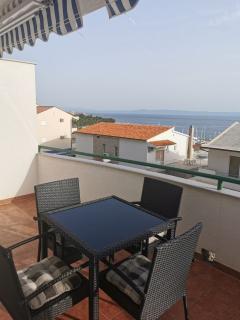 The apartment is located in a residential building. One-room apartment with a living room with a sofa, TV. It has WIFI, air conditioning. The exit from the living room to the balcony with a view of the sea can be seen in the pictures. Kitchen and dining room. The apartment has its own garage space on the ground floor, from which you can take the internal stairs to the apartment.