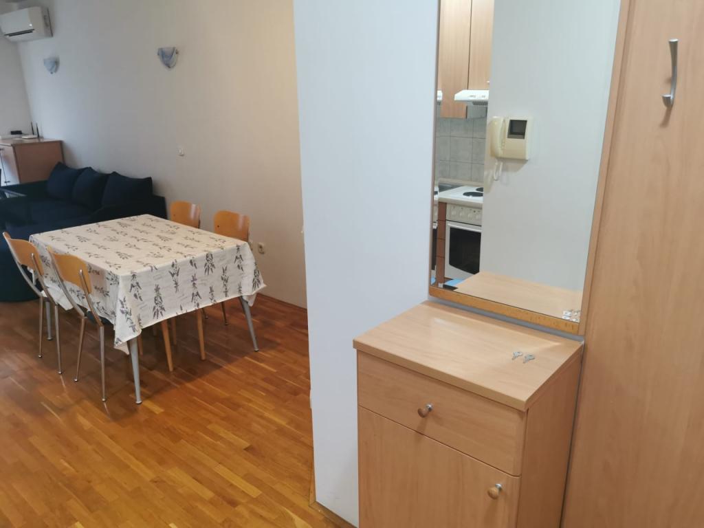 The apartment is located in a residential building. One-room apartment with a living room with a sofa, TV. It has WIFI, air conditioning. The exit from the living room to the balcony with a view of the sea can be seen in the pictures. Kitchen and dining room. The apartment has its own garage space on the ground floor, from which you can take the internal stairs to the apartment.