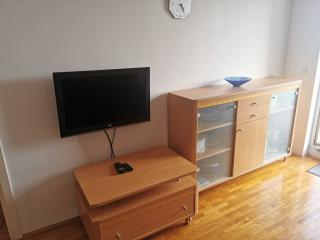 The apartment is located in a residential building. One-room apartment with a living room with a sofa, TV. It has WIFI, air conditioning. The exit from the living room to the balcony with a view of the sea can be seen in the pictures. Kitchen and dining room. The apartment has its own garage space on the ground floor, from which you can take the internal stairs to the apartment.