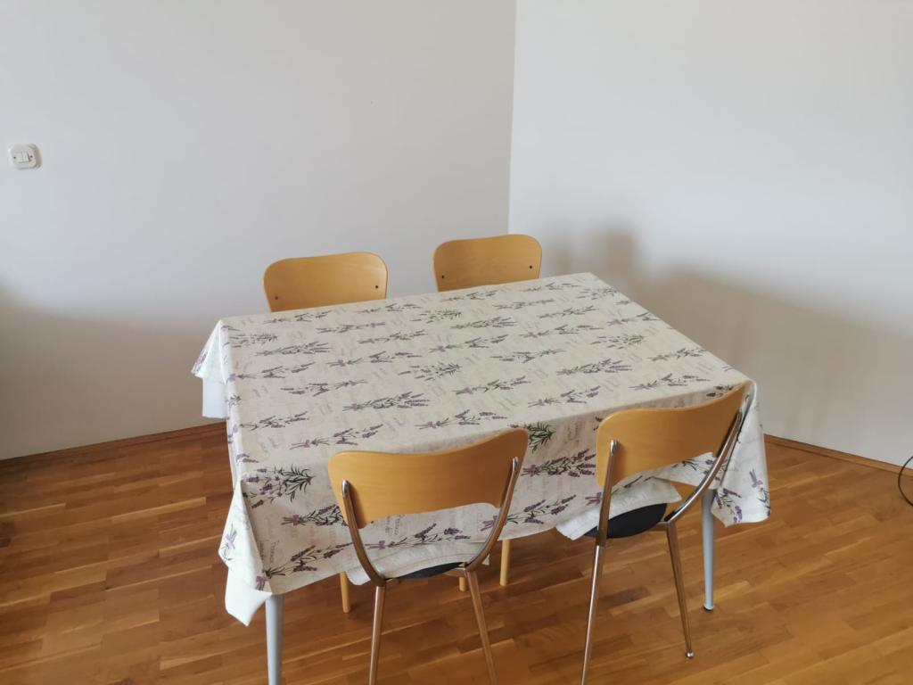 The apartment is located in a residential building. One-room apartment with a living room with a sofa, TV. It has WIFI, air conditioning. The exit from the living room to the balcony with a view of the sea can be seen in the pictures. Kitchen and dining room. The apartment has its own garage space on the ground floor, from which you can take the internal stairs to the apartment.
