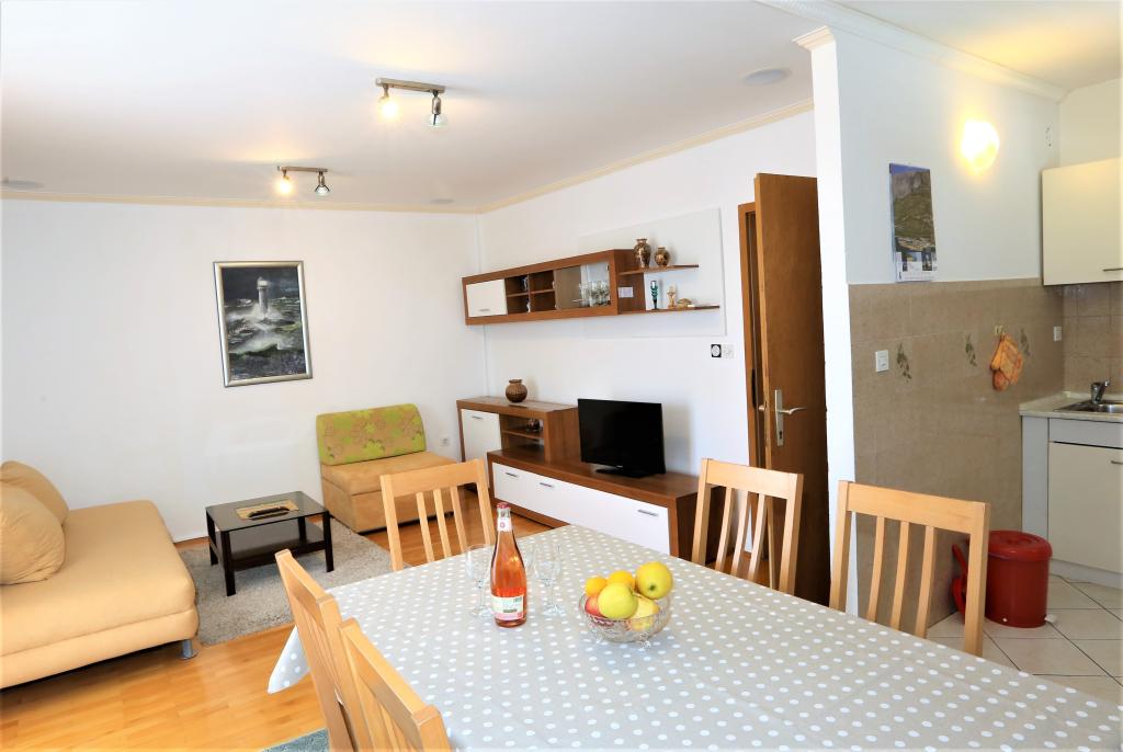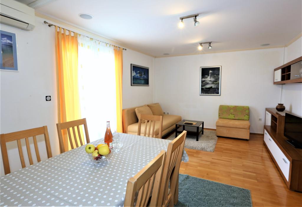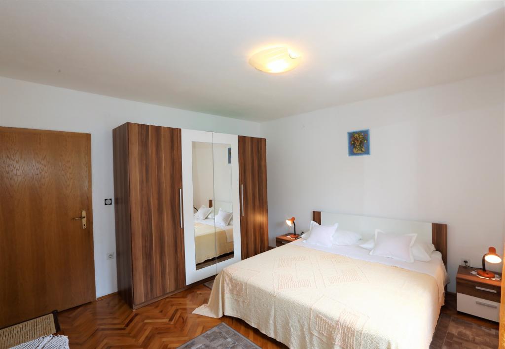 The apartment is located on the first floor of a family house, 300 meters from the sea, center, beach. In a quiet part of Baska Voda. It has its own parking in the yard of the family house which is included in the price. The apartment is fully equipped with all necessary facilities for a comfortable stay. The apartment consists of three double bedrooms where each room has its own bathroom. The apartment also has a kitchen, living room and balcony and is fully air conditioned. The total area of †‹вЂ‹ the apartment is 120 square meters.