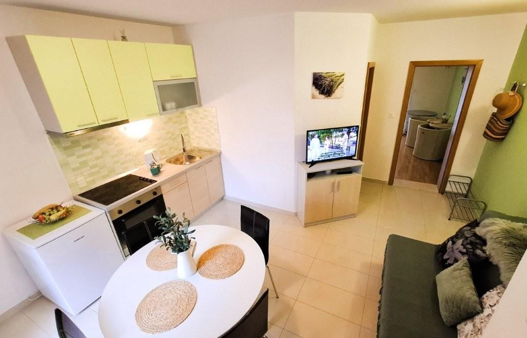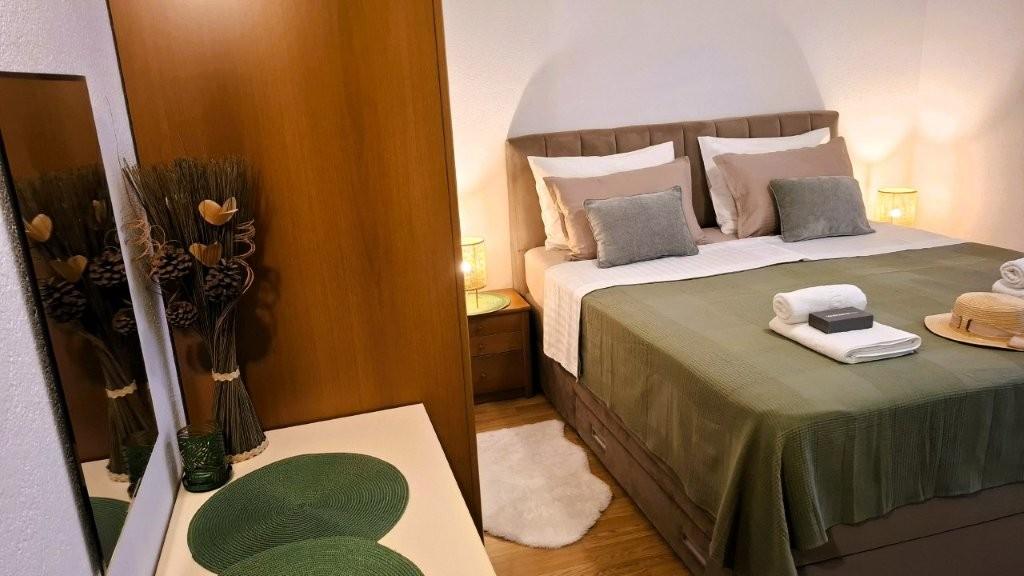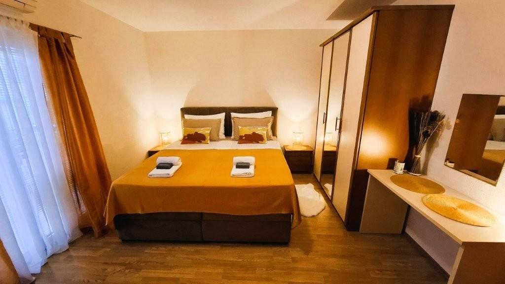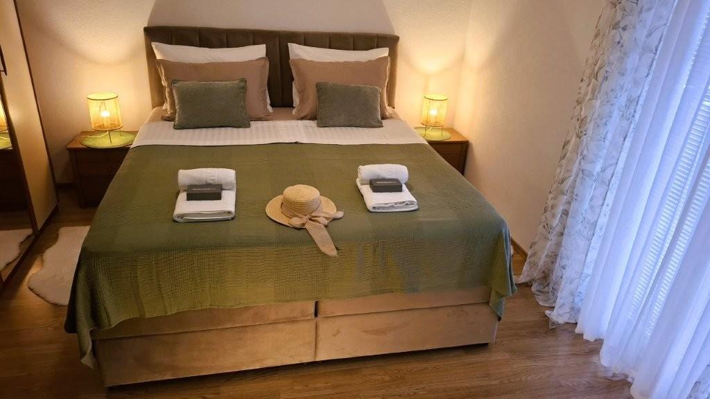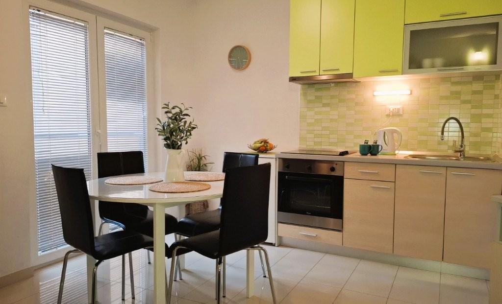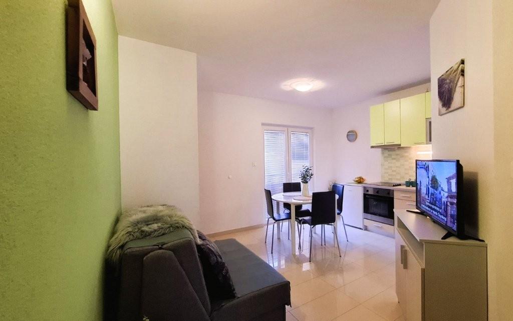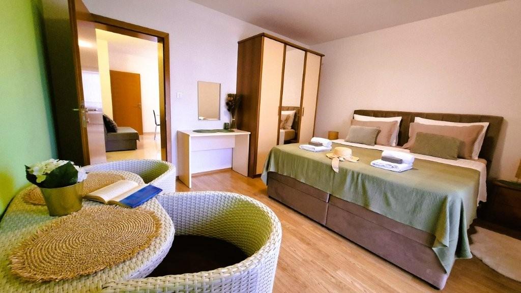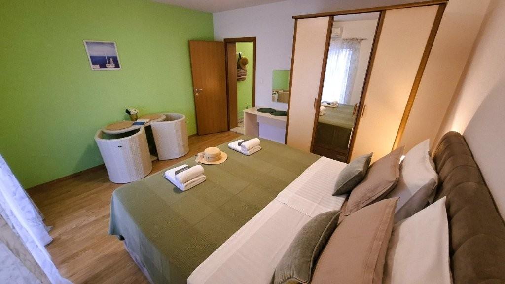Residential tax is included in price.Parking space directly in front of the house, WiFi, air conditioning, and tourist tax are included in the price of accommodation. There is also an external barbecue for use, a baby travel cot available on request, and a washing machine for use within the house. Towels are changed every 3 days, with intermediate cleaning and bedding change after 7 days for a 14-night stay. Upon request and for an additional fee, we can arrange airport transfers. Nearby the apartment, there is a shop, bakery, and medical centre. Apartments Harmonija have excellent guest experiences and ratings, particularly for location, 200m from the sea, cleanliness, and comfort, making them a perfect choice for family holidays or couples' stays.