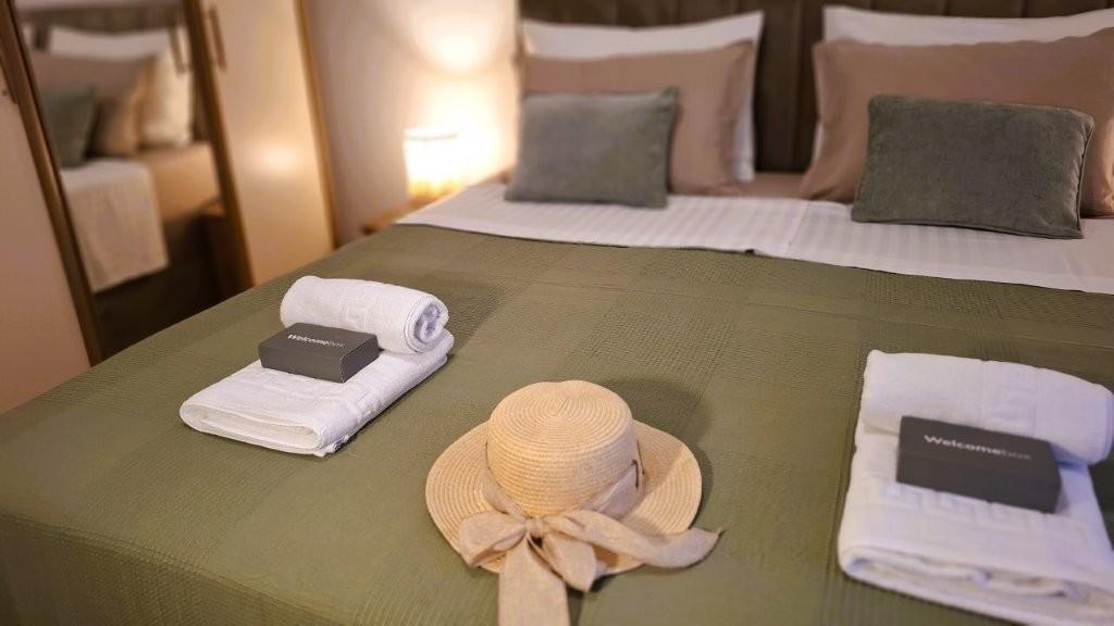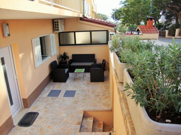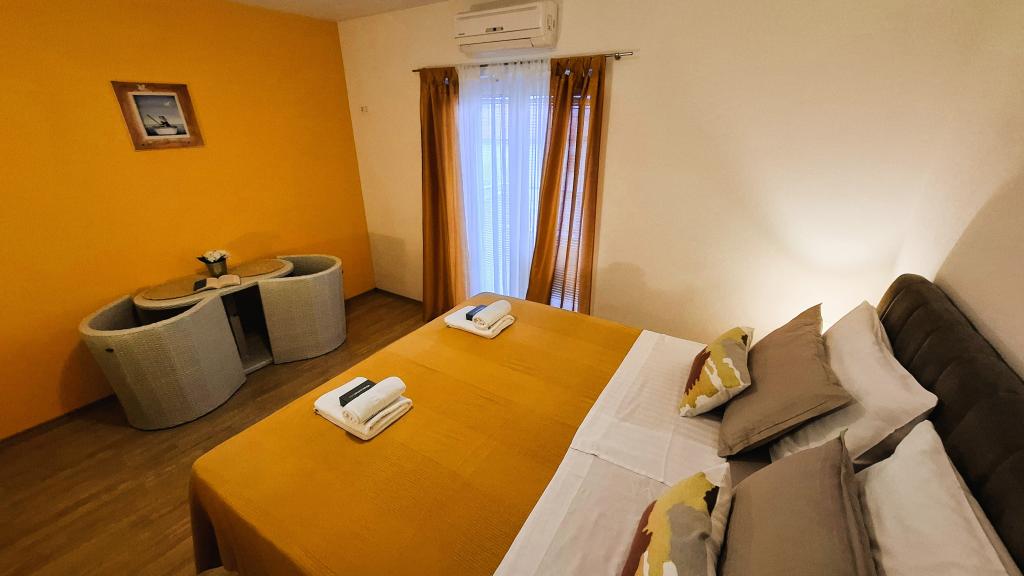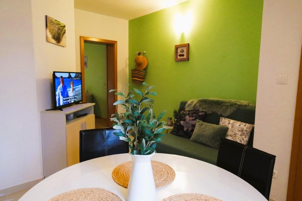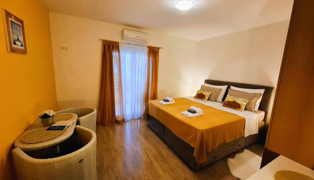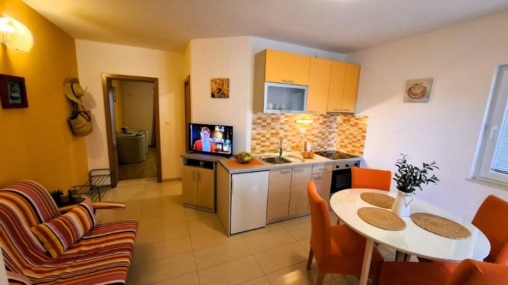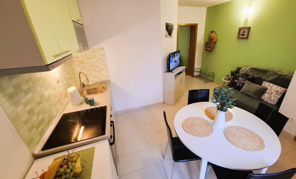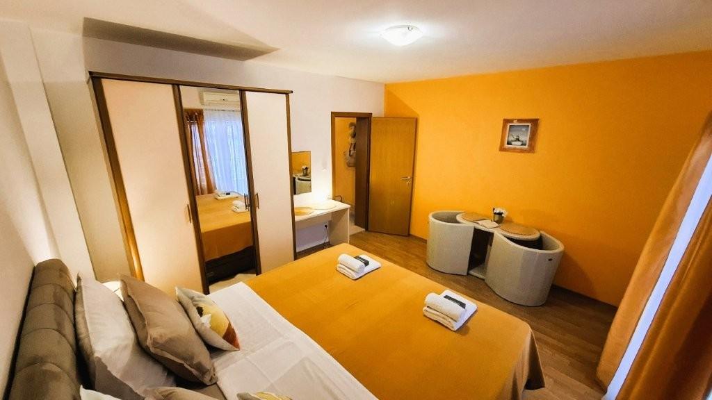 Residential tax is included in price.Parking space directly in front of the house, WiFi, air conditioning, and tourist tax are included in the price of accommodation. There is also an external barbecue for use, a baby travel cot available on request, and a washing machine for use within the house. Towels are changed every 3 days, with intermediate cleaning and bedding change after 7 days for a 14-night stay. Upon request and for an additional fee, we can arrange airport transfers. Nearby the apartment, there is a shop, bakery, and medical centre. Apartments Harmonija have excellent guest experiences and ratings, particularly for location, 200m from the sea, cleanliness, and comfort, making them a perfect choice for family holidays or couples' stays.