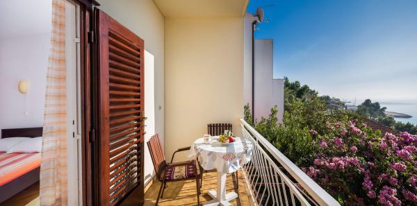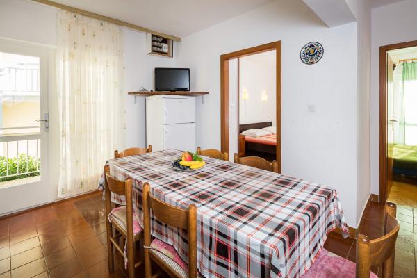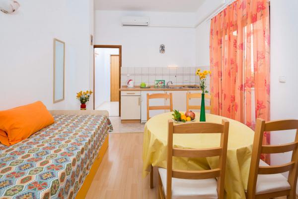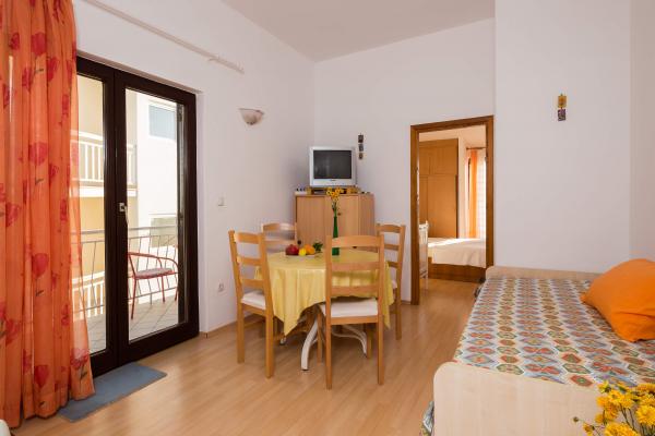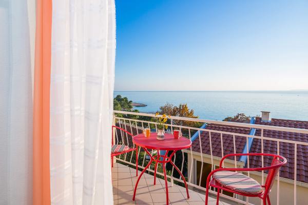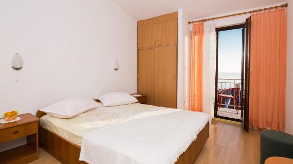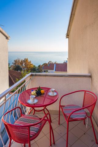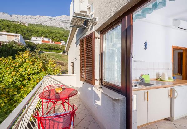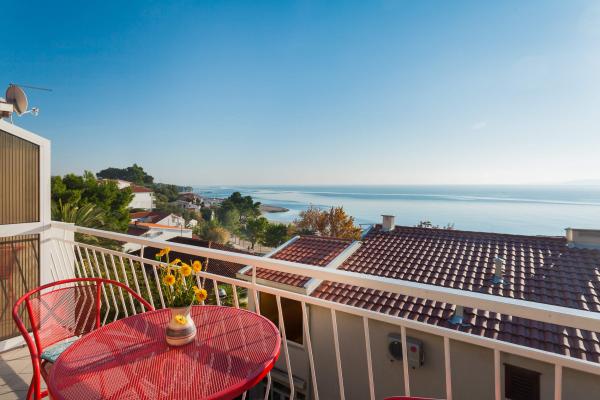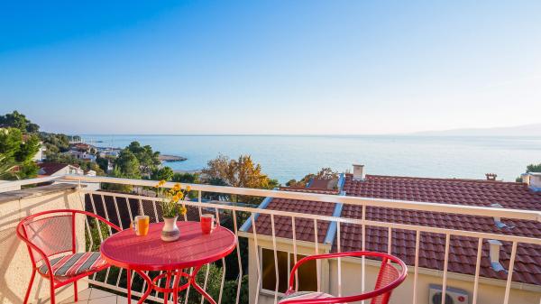 Apartments Jurišić are located in the western part of Baška Voda, ideal for a peaceful vacation. They are located close to the sea and the beach. There are three apartments on offer. On the first floor is an apartment for 7-8 persons, on the second floor are two apartments for 2-4 persons. Each apartment offers views of the sea and the mountains.