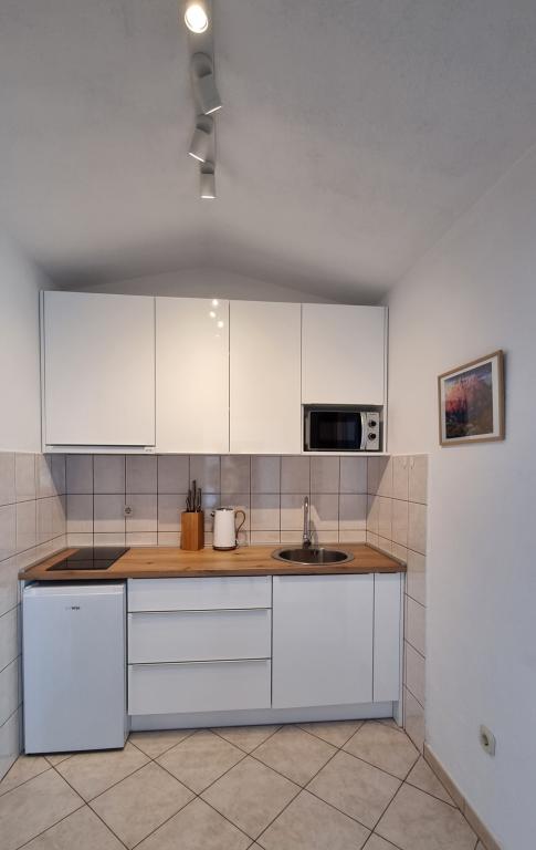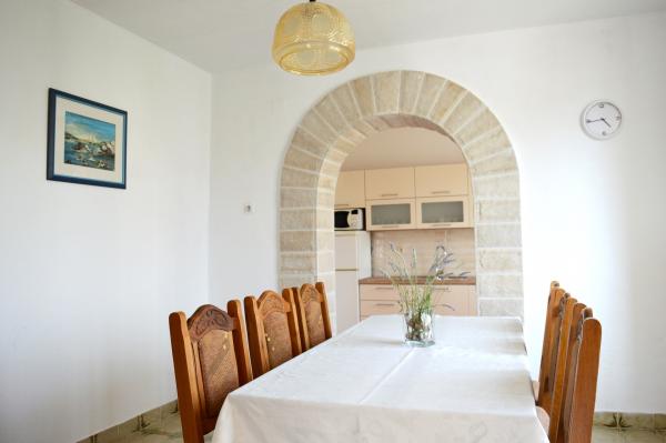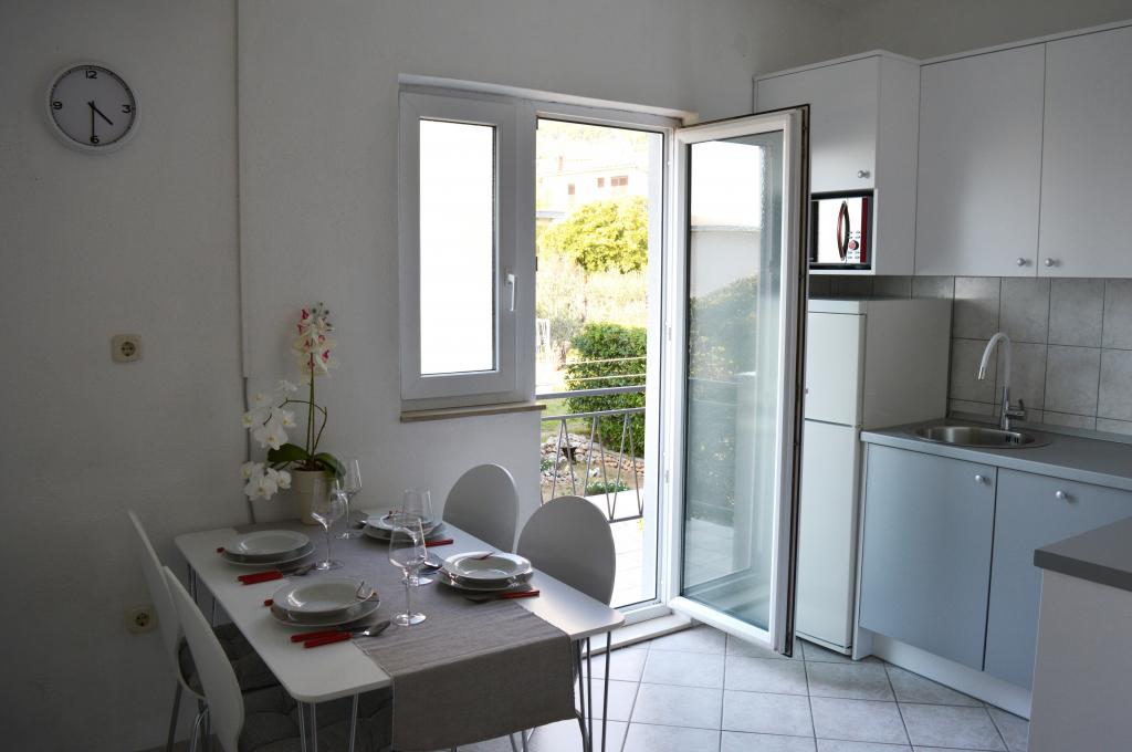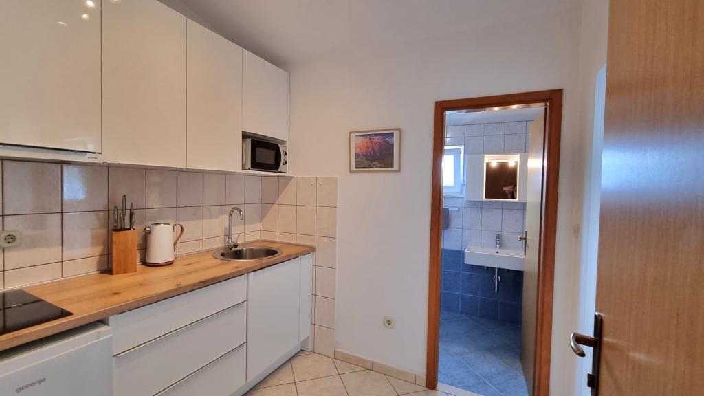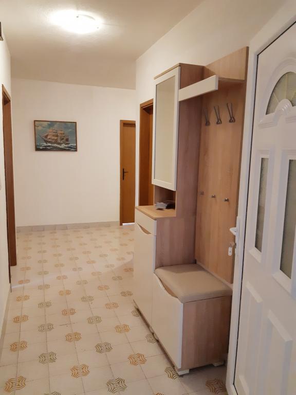 We were in the accommodation for 10 days. I can say that the hostess is a wonderful lady! Kind, nice! She welcomed us with homemade brandy. She offered her daughter a cookie, a chocolate bar, and a piece of fruit almost every day. The accommodation is neat and clean! The kitchen is perhaps better equipped than mine at home. The apartment has a hairdryer, ironing board, iron, sink. Our car was parked in the courtyard of the villa in the shade. The sea is only 200 m away, as is the store. Konzum or tommy is equally far if you are going to shop up or down to the sea. All recommendations. I hope that at some point we will come to Baške vode again, and if we do, we will definitely come to Aunt Neva again.