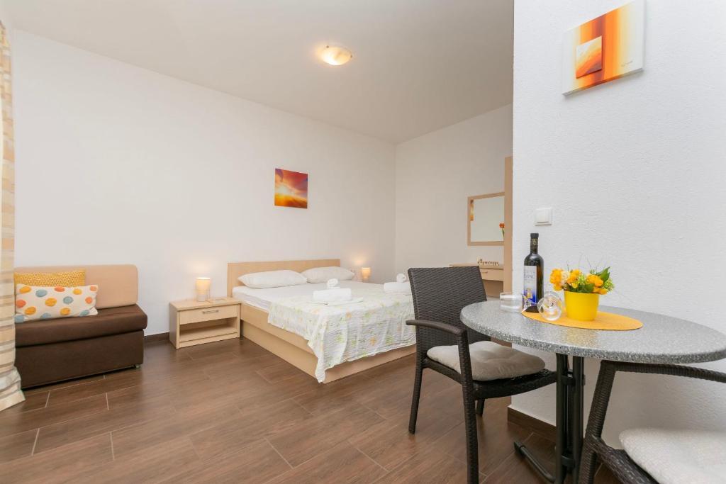 Residential tax is included in price.We stayed in a studio apartment +1 . The apartment is the same as shown in the photographs .. We are really delighted and pleasantly surprised by the service .. The apartment was very clean and tidy . Sheer and bright . All praise for the apartment and its maintenance . The owners , landlord and landlady are very accessible , not intrusive , they will always help you if you need anything ... balcony in the apartment was beautiful , the view from it is an enchanting and magical . We enjoyed the night spend on it .. Baska Voda is a beautiful place , a place with soul , relaxation for body and soul . So calm and peaceful ... We are delighted and thrilled .. recommend to everyone , Baska Voda and Villa Ancora , you will not regret it !