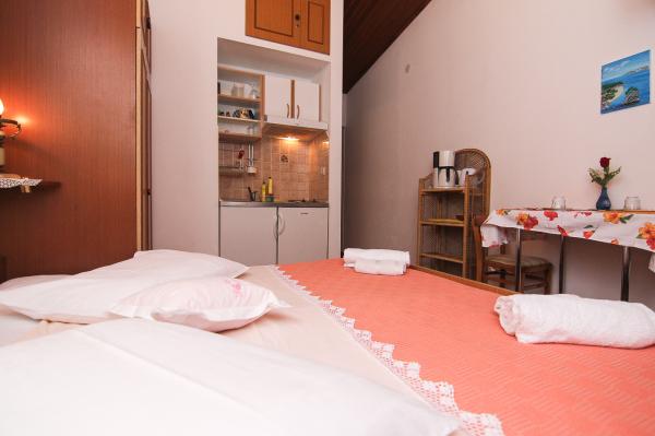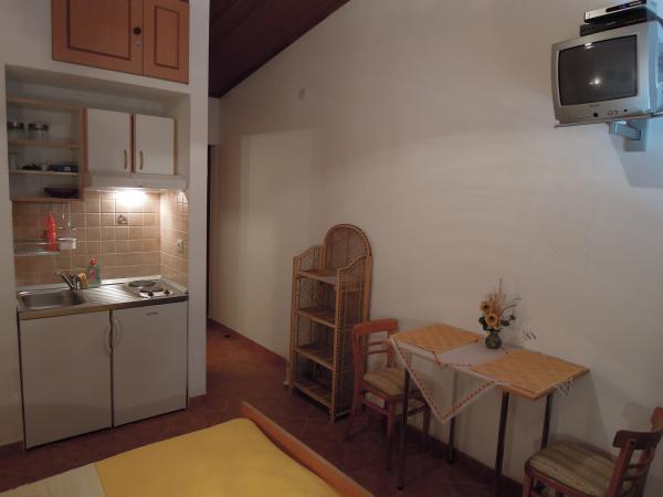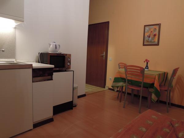 The studio is very neat. The hosts are great, they welcomed us with homemade brandy and fruit that they personally grow. The studio, equipped with everything you need to stay at sea, has a great sea view from the balcony, which we used a lot because we stayed there with an 11-month-old baby. We even got a free crib for our baby. All recommendations.