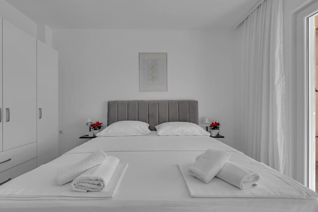 The apartment is not large, but it's neat and contains everything you could need in a ten-day holiday. The space is clean and tidy. The essential detail is that you will also receive basic household utensils such as kitchen cloths, dishwashing detergents, sponges and several cleaning agents. We got clean enough cleaners, and hosts were also offered to replace them during their stay and opera. The location of the apartment is also good because it is relatively close to the beach and the center, a maximum of ten minutes walking downhill. What most liked us is the hospitality of very friendly hosts. You will make yourself comfortable and borrow if you need extra household appliances and will also be offered for transportation when entering or leaving the apartment.