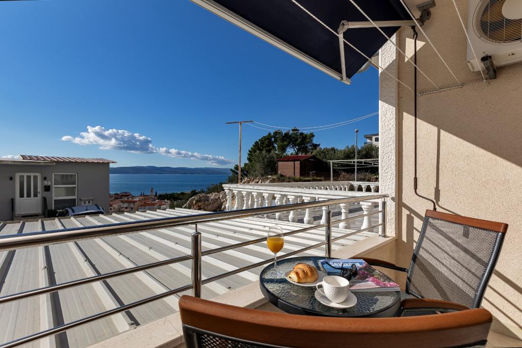 Apartments Jelić are located in a quiet part of Baška Voda. The apartments we offer have a separate entrance on the north side of the house, and a secured garage parking space for each apartment. The house is 400m from the beach and the center (5-10 min walk). Out of 7 apartments, 5 have an open view of the sea, and 2 have a view of the Biokovo mountain. All apartments have balconies, air conditioning and televisions. Dear guests, welcome!