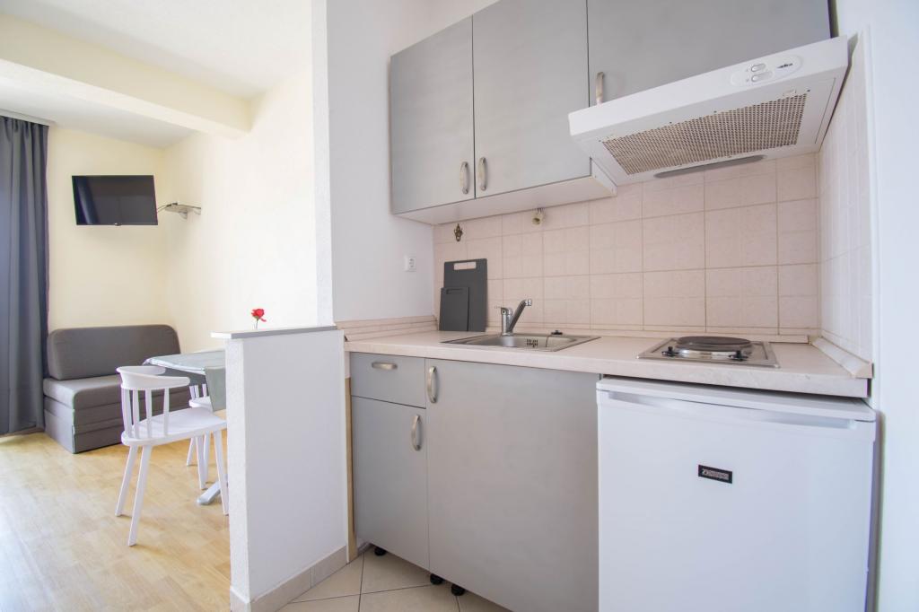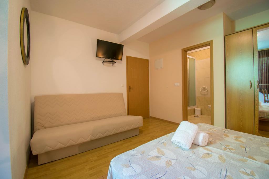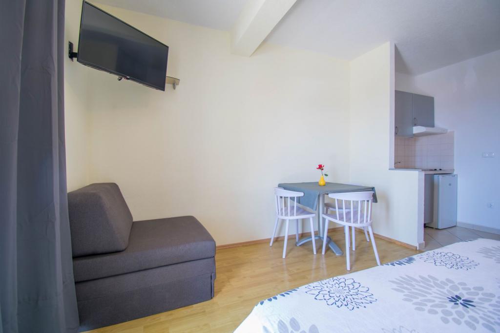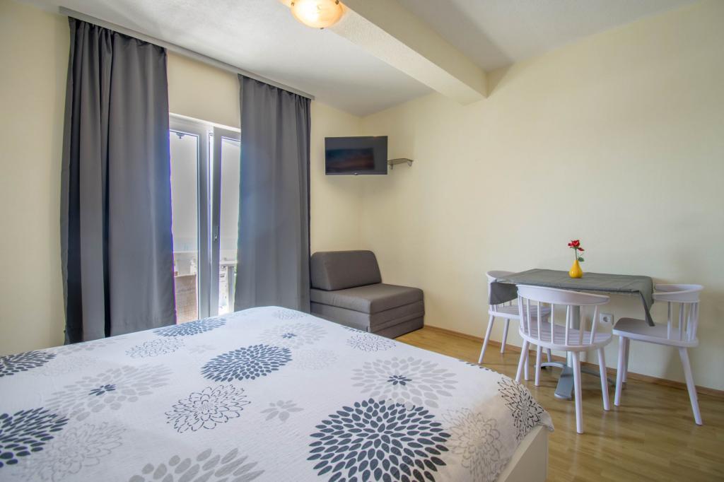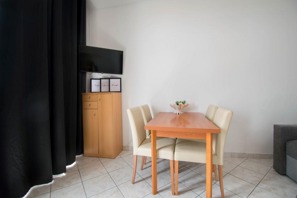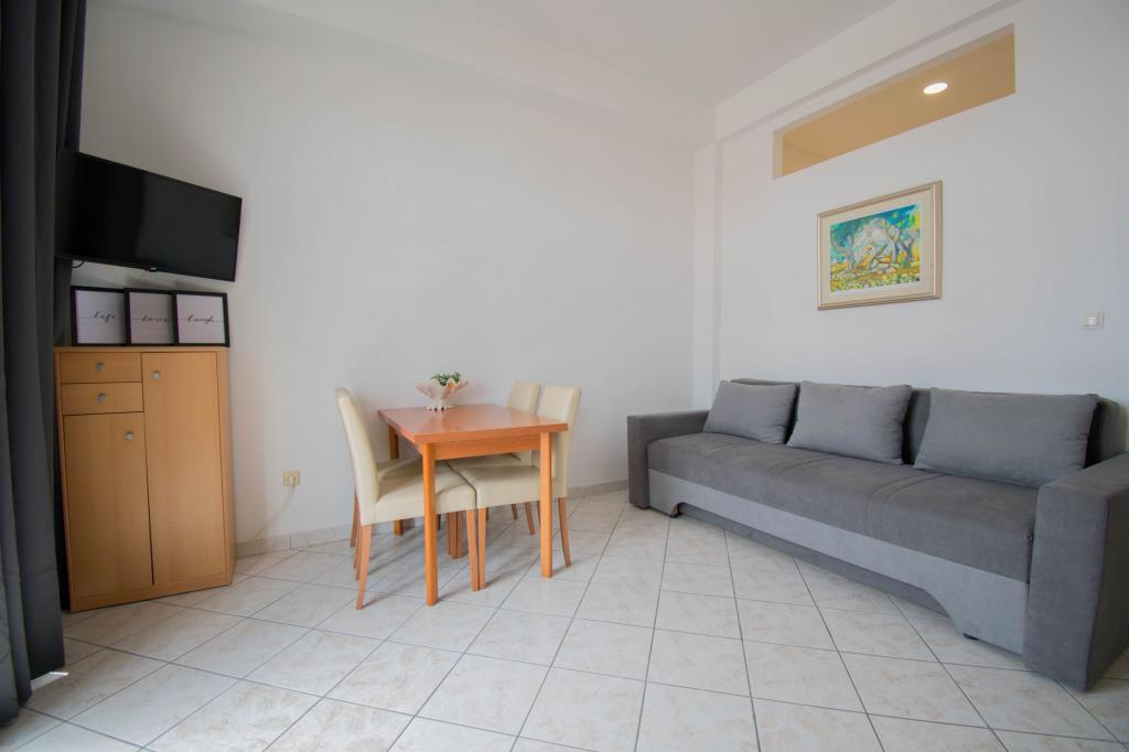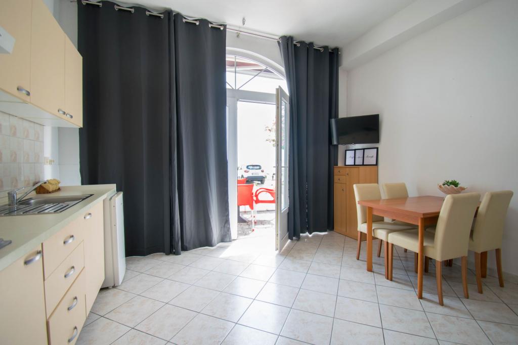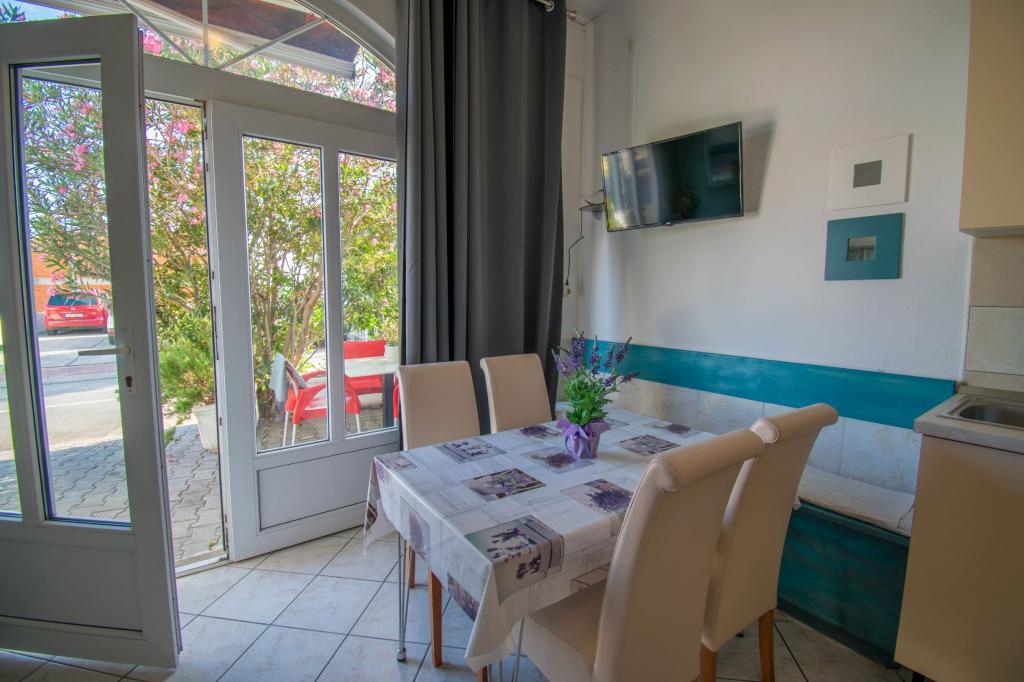 The property is located in a quiet area of Baska Voda. The facility is located 3 minutes walk from the center and the beach. The restaurant is located 20 meters from the accommodation. Near the shops, the distance of 40 meters. Two apartments on the ground floor with access for the disabled. Parking is included in the price. Possibility of transportation from the airport to accommodation surcharge.