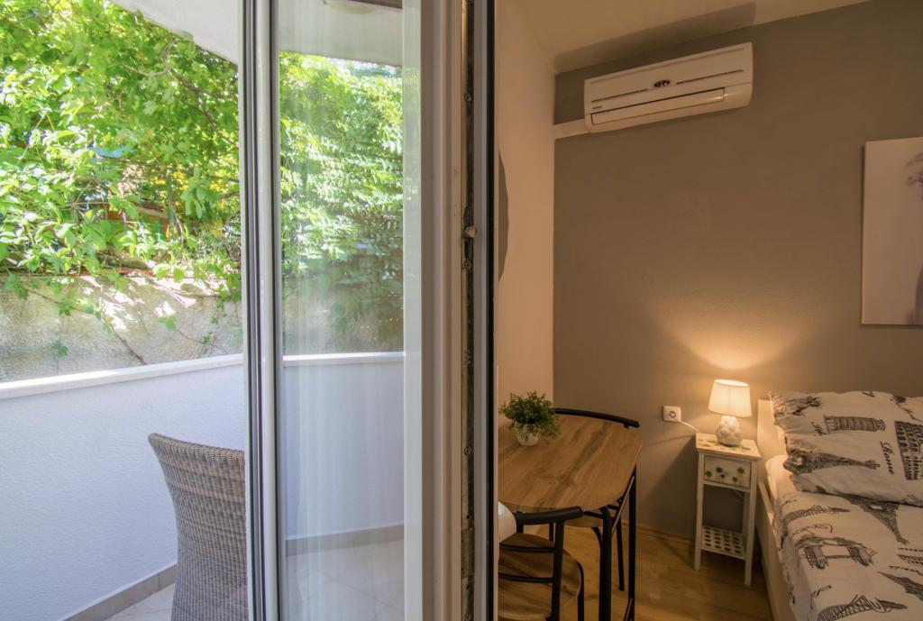 The apartment was on the ground floor, by the street, so you couldn't sleep with the door open. Air conditioning like everywhere, only in the main living room. There is a window only in the main living room, the bedroom is windowless, but that was a plus, because there was no sun there. Clothes dryer a plus, minus the equipment, a few plates and glasses, no microwave, but in front of the entrance there was a kettle with chairs, despite the street, no one looked at the plates, but there is a small terrace. Parking at a height behind the house. The rooms on the first floor would be more atmospheric.