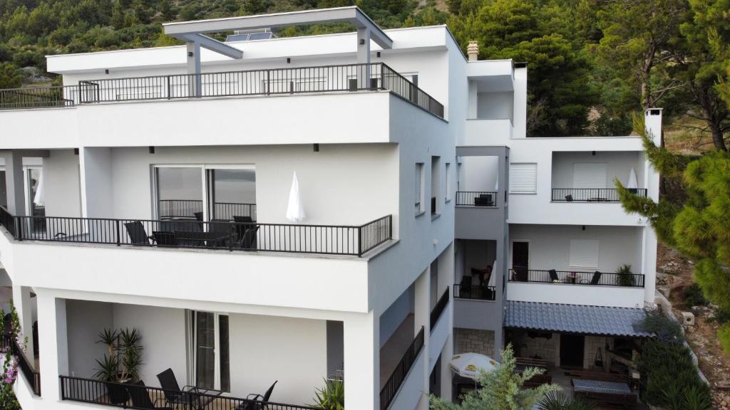 Our apartments are located in a quiet area of Baska Voda, surrounded by pine trees with a beautiful view of the sea and islands. It allows you to complete peace and relaxed atmosphere to spend your vacation.