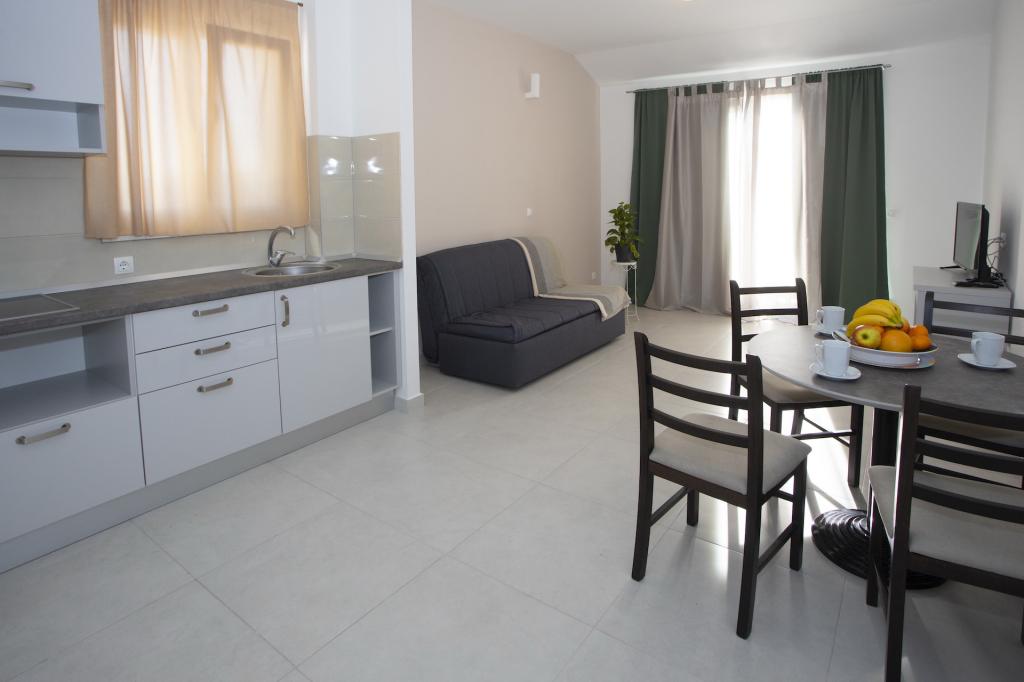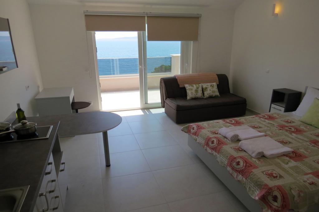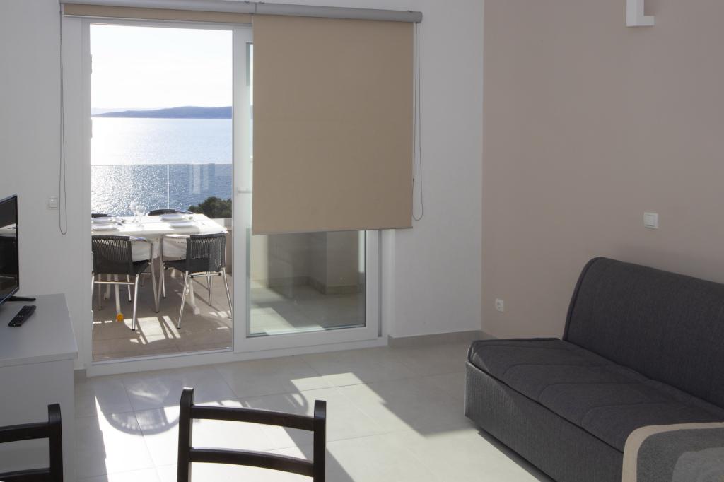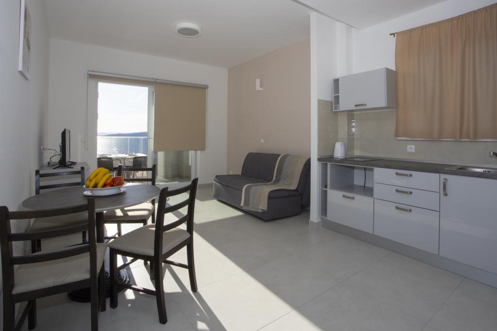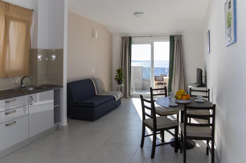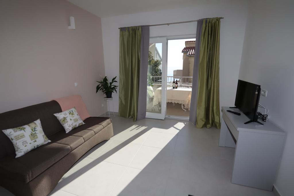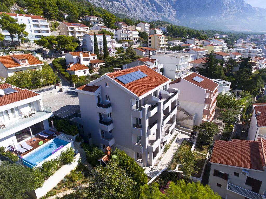 Newly built apartments located in Baška Voda near the center, and only 50 meters from the beach. Spacious apartments with a fully equipped kitchen, a seating area with a flat-screen smart TV with satellite channels, free Wi-Fi and free parking.