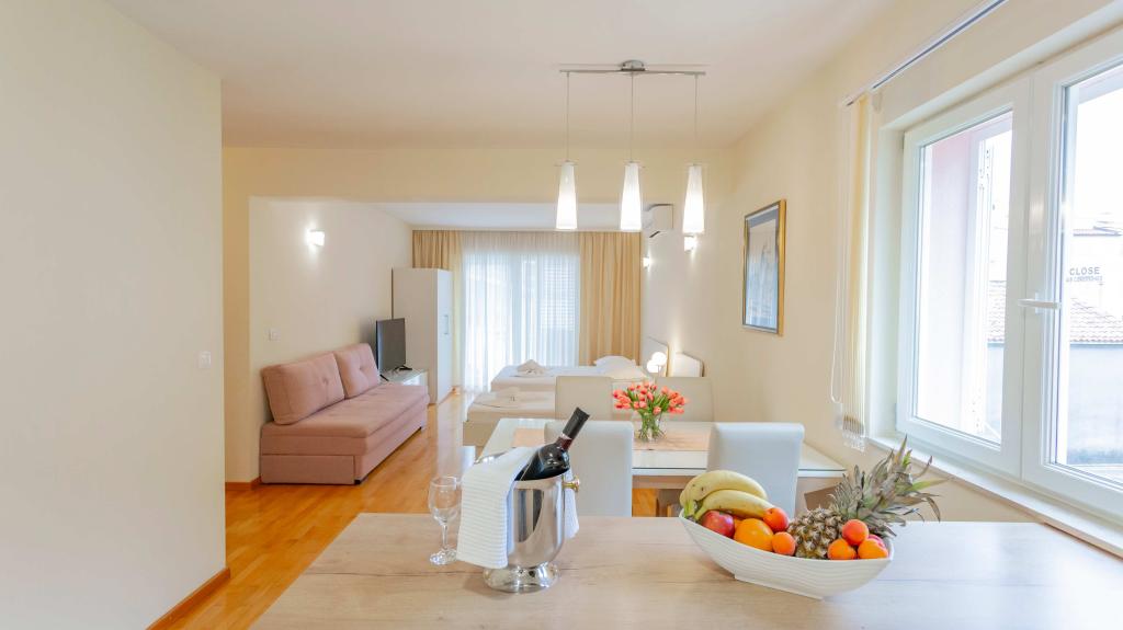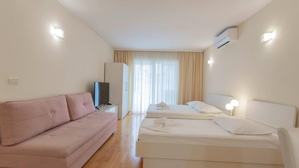 Located in a quiet street in the heart of Baška Voda, our fully equipped apartments are just a 2-minute walk from the main beach, shops, restaurants and the town center. Each apartment has air conditioning, free Wi-Fi and its own parking space in front of the building. They are an ideal choice for guests who want to enjoy being near the sea, but also have peace and comfort during their vacation.