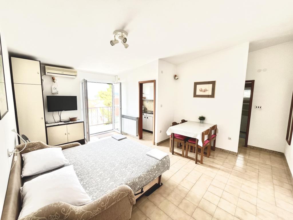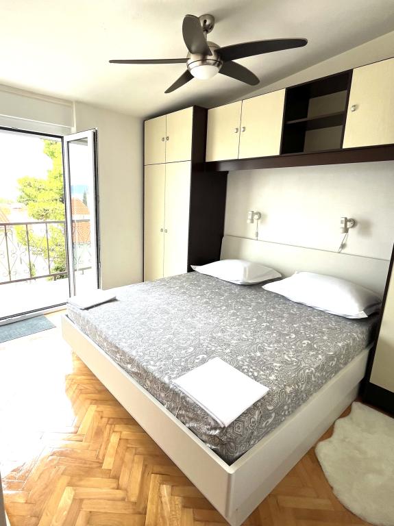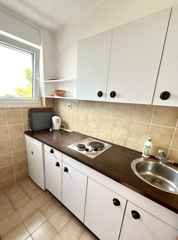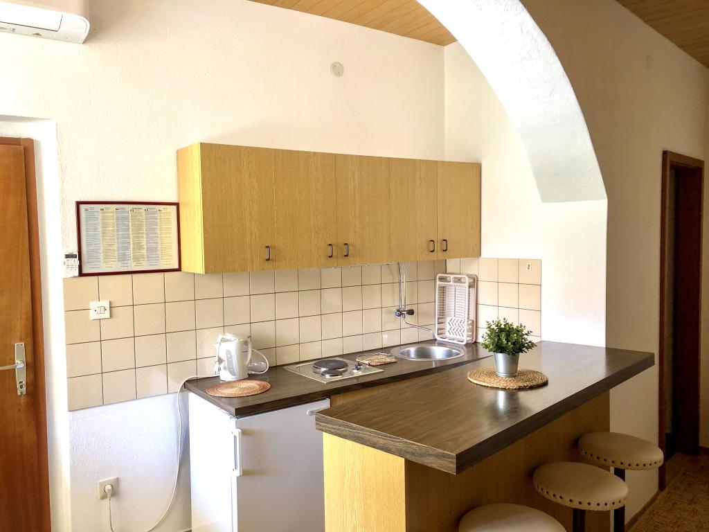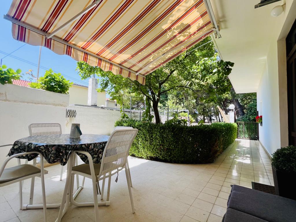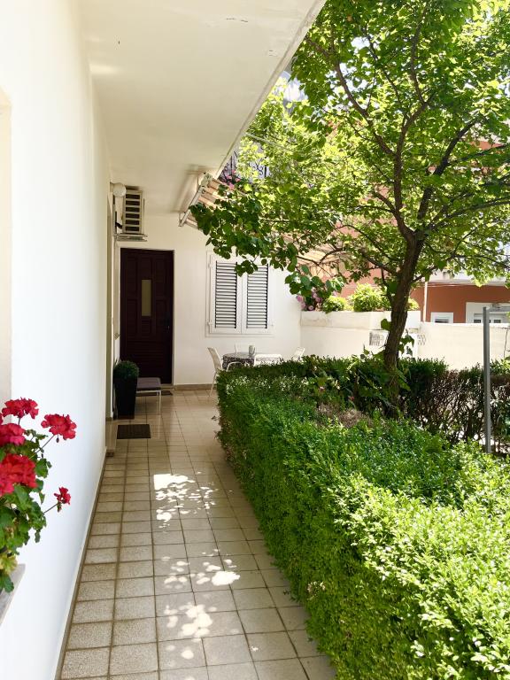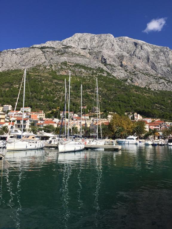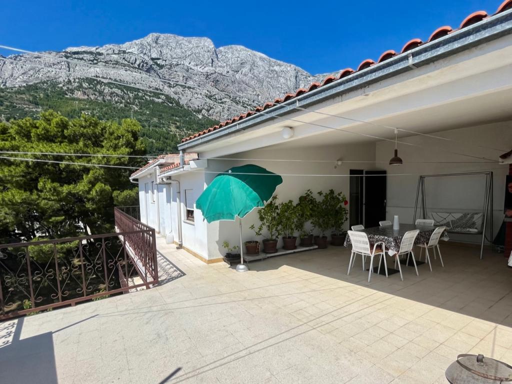 Welcome to our family house in a quiet part of the center of Baška Voda, right next to the pine forest and the church of St. Lovre. The house is a 2-minute walk from the sea and the pebble beach, and offers a beautiful view of Mount Biokovo and the islands of Brač and Hvar. The apartment on the ground floor is ideal for a couple with children or two couples. It includes a kitchen, a master bedroom with bathroom and a separate room with its own bathroom, ensuring additional privacy and comfort. The terrace offers a view of our garden and the nearby pine forest and is perfect for morning coffee or evening relaxation. The apartment on the second floor offers an extraordinary open view and is ideal for a couple with children or just a couple. It has a separate kitchen, a living room with a large sofa bed, a bedroom and a bathroom. The large terrace is an ideal place to enjoy privacy during your vacation. We provide our guests with private parking a 7-minute walk from the house. Come and experience our hospitality and enjoy the ideal location for a perfect vacation in Baška Voda!