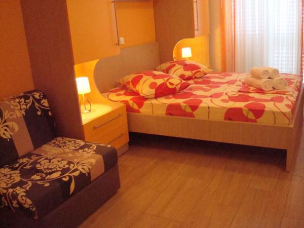 We spent a wonderful holiday in Baska Voda in red and yellow studios from Sanja's house. The rooms are very clean, equiped, air-conditioned and look like in the pictures. The view from the balcony is awesome, you can see the mountains or the sea. Also, the house is closed to the beach (5 min walk). The owners were very nice with us, thoughtful and ready to help us no mather the clock is, even at 6 in the morning :-) Also, they helped us to do a wondeful boat trip, jetski and parasailing, which was great. Greetings Sanja and Niksa from Romania :)