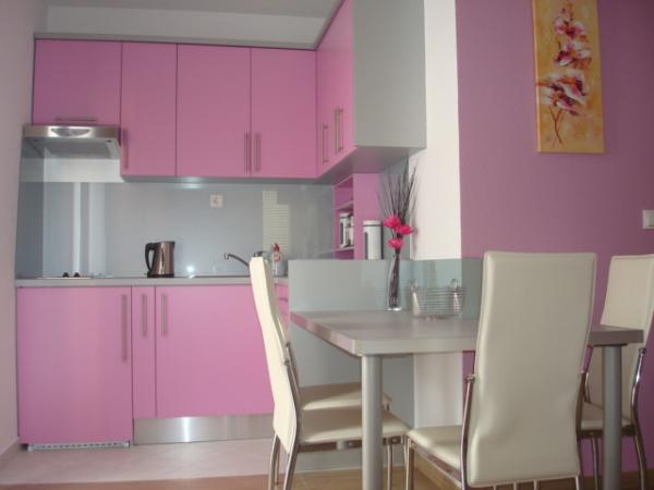 Sanja apartments are newly built apartments a modern look and design where you will find everything you need for a memorable vacation at the seaside! We offer pink apartment (2 +2), red studio apartment (2 +2) and yellow, green and orange studio apartment (2 +1). Each apartment has a fully equipped kitchen with refrigerator, bathroom, balcony ... All apartments are new and air-conditioned. The house is located in a quiet area of Baska Voda with only a 3 minute walk to the beautiful beaches. We are also dealing with the organization of excursions and water sports. We can arrange a boat trip to the islands or in the safe harbor, we have parasailing, jet skis, water skiing ... If you want the vacation to the right address, so dear guests WELCOME!