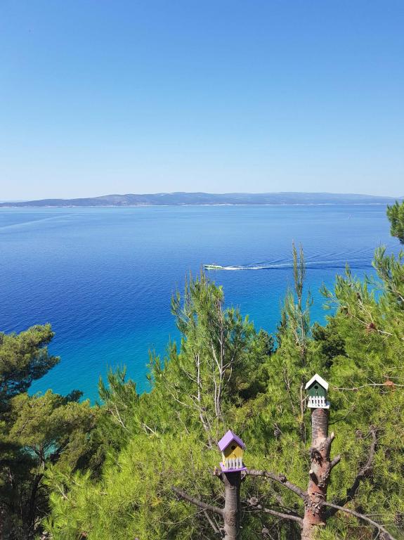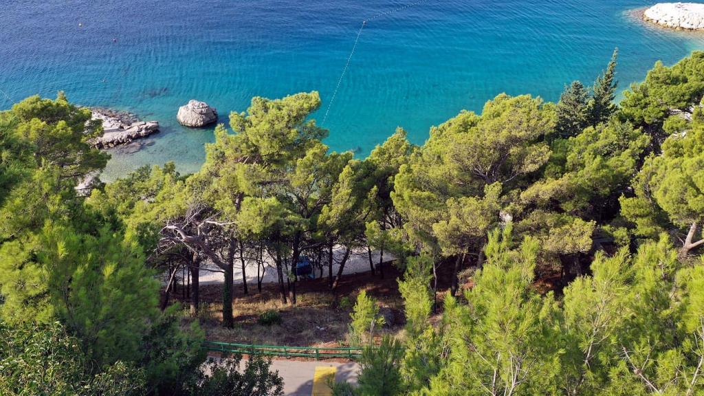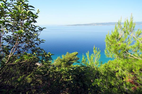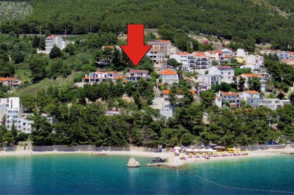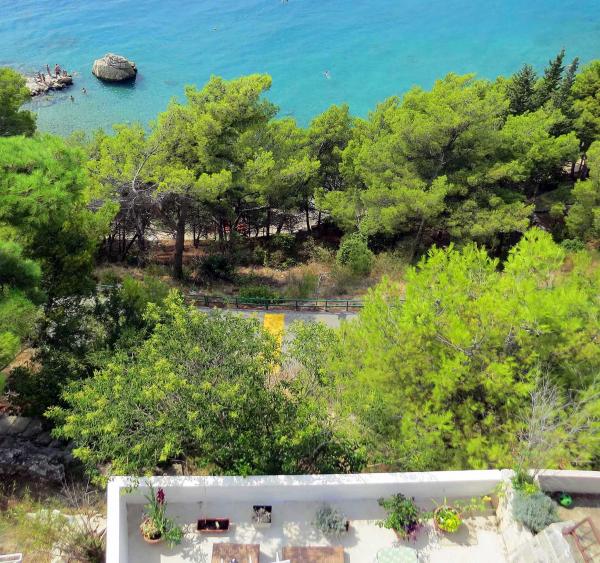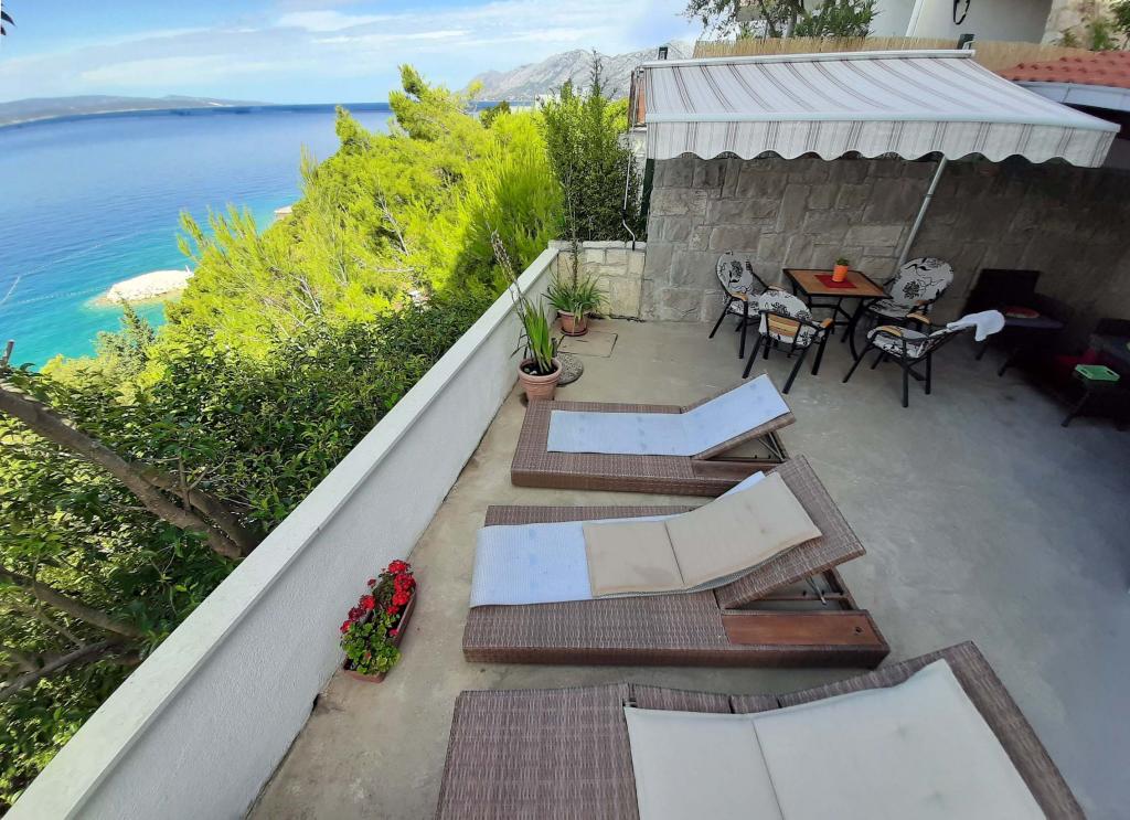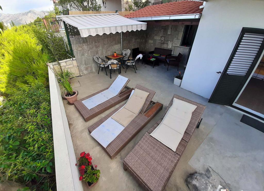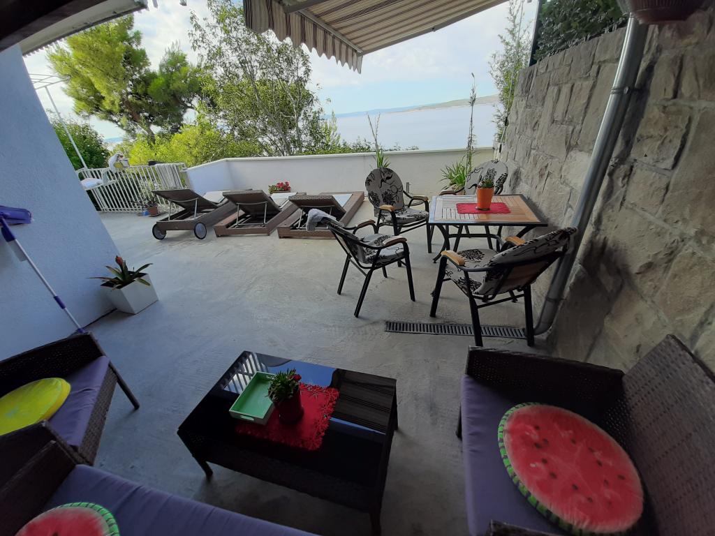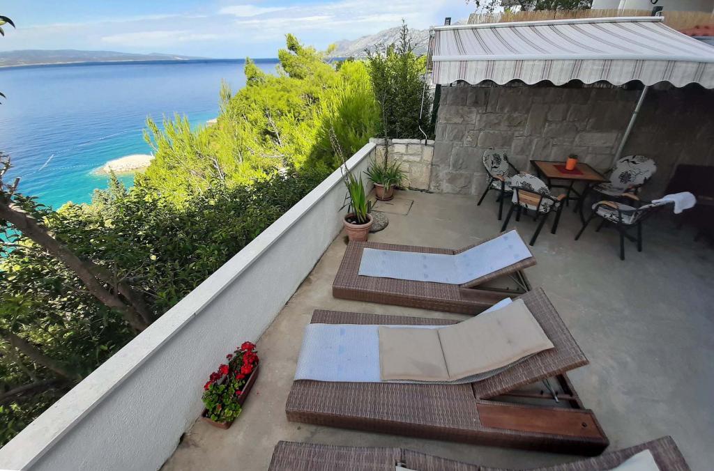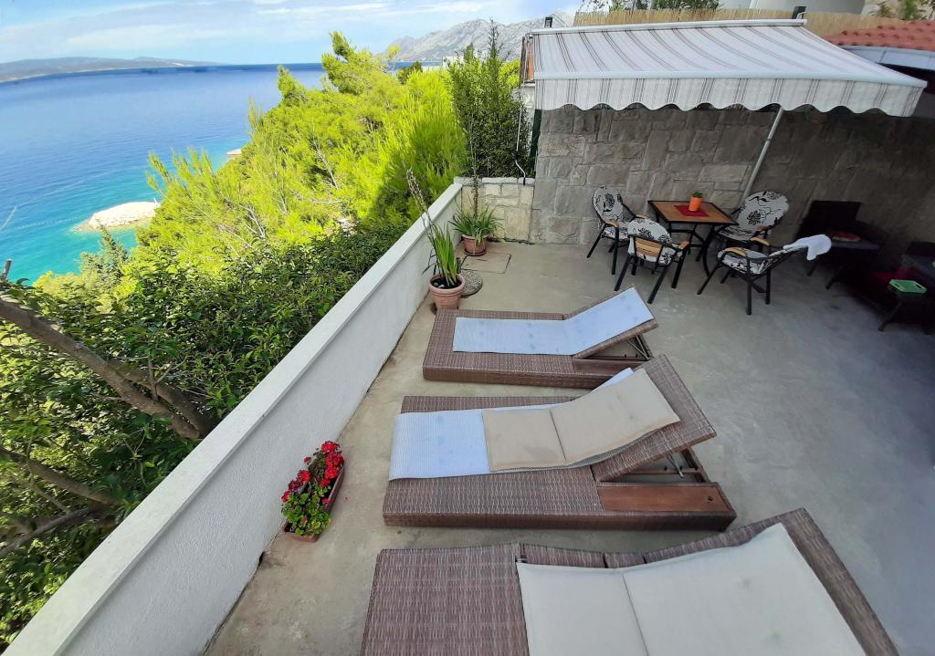 Newly renovated and fully equipped apartment in a quiet area between Baska Voda and Brela, located first row to the sea, above a beautiful beach. The facility is located 10 minutes walk (approx. 500 m) from the center of both places. Large terrace with canopy and sea view, 2 double bedrooms, two bathrooms and kitchen with access to the terrace. Everything new. The apartment is located on a separate floor with a separate entrance, a large garden separated from all neighbors. Private parking in the shade just above the house.