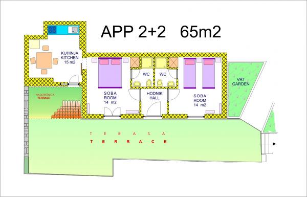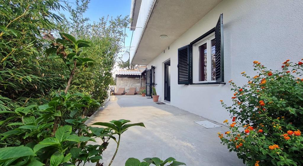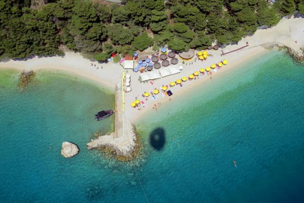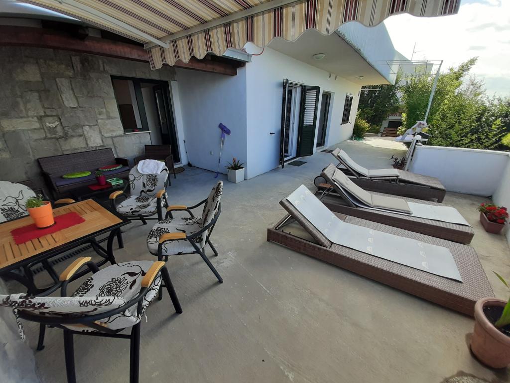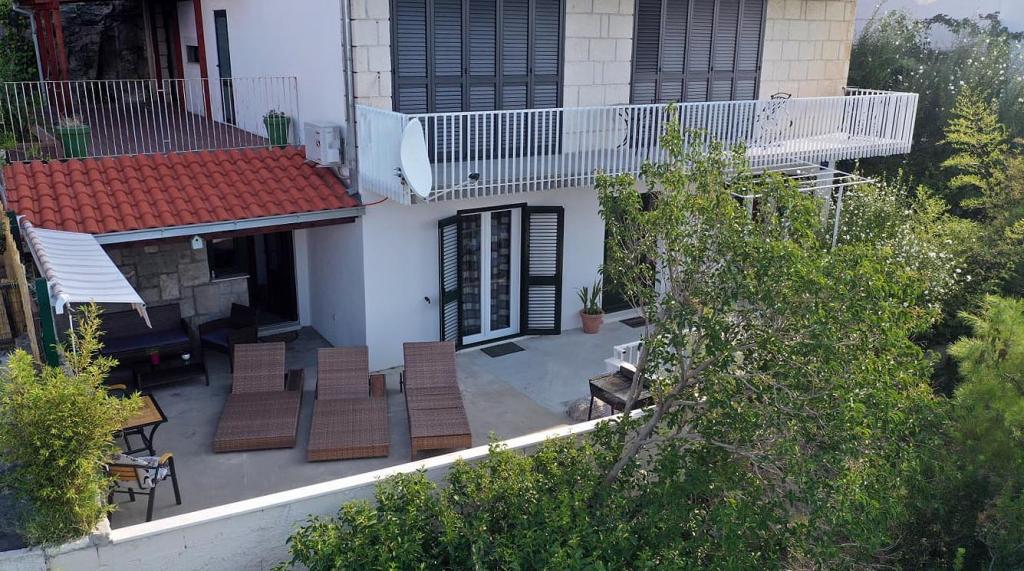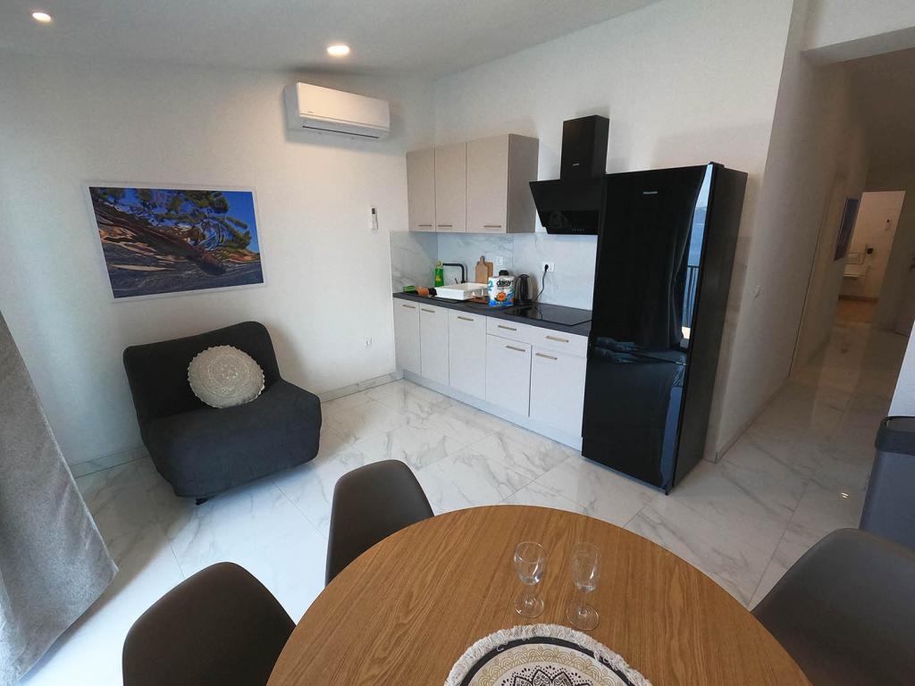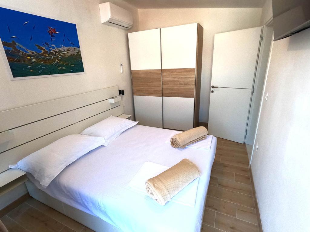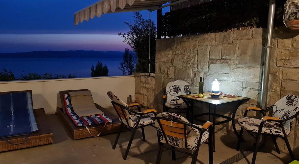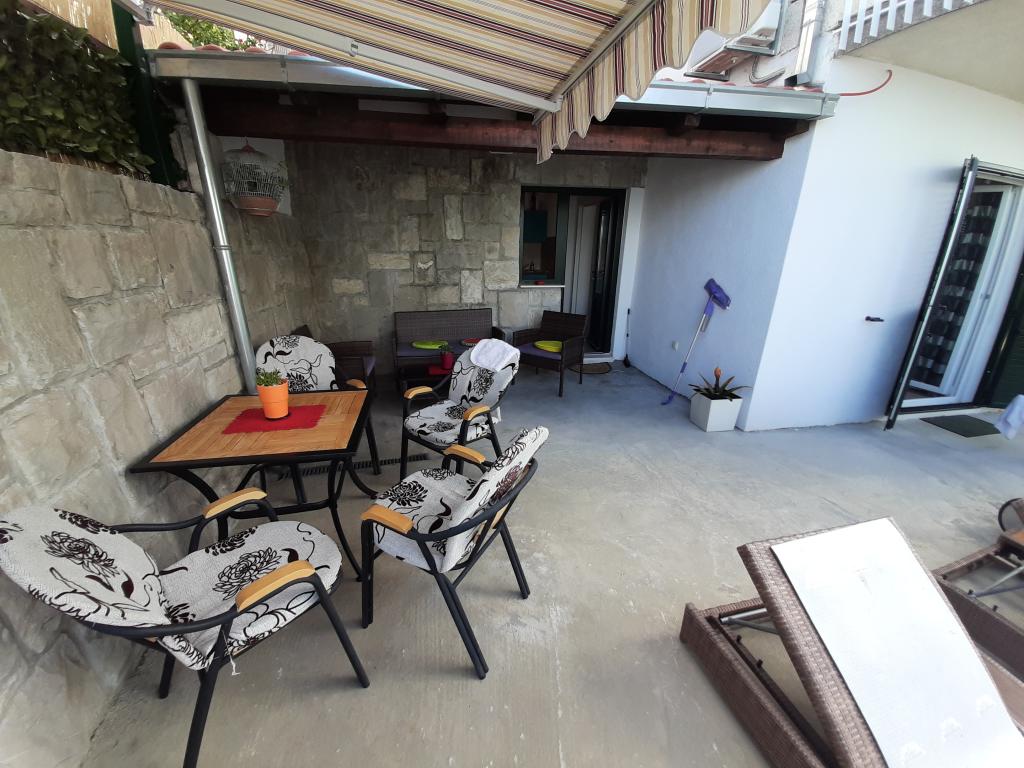 Newly renovated and fully equipped apartment in a quiet area between Baska Voda and Brela, located first row to the sea, above a beautiful beach. The facility is located 10 minutes walk (approx. 500 m) from the center of both places. Large terrace with canopy and sea view, 2 double bedrooms, two bathrooms and kitchen with access to the terrace. Everything new. The apartment is located on a separate floor with a separate entrance, a large garden separated from all neighbors. Private parking in the shade just above the house.