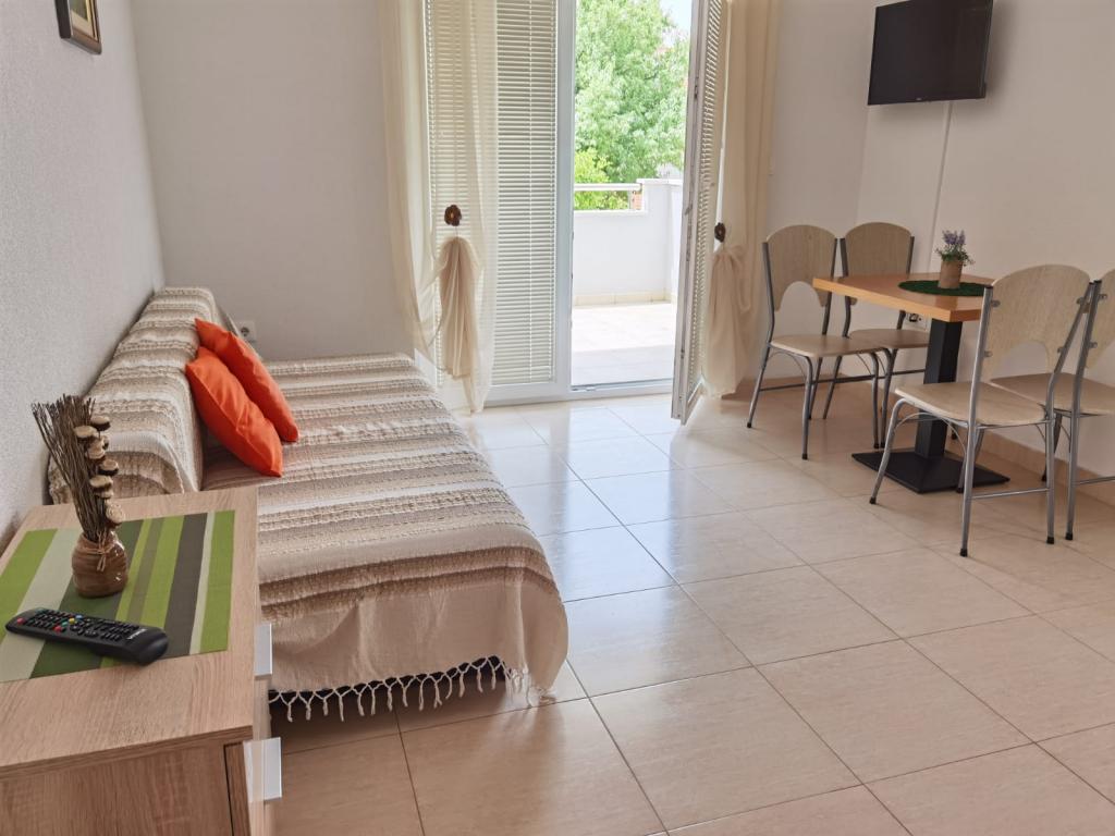 The apartment is clean, close to the beach and has a beautiful view of the sea. The apartment has everything you need in the kitchen, towels, hair dryer and is very clean. It is in a quiet part of Baška Voda. It is also a big advantage that it has its own parking lot. All praise and recommendations for a stay in Staničić apartments. The hosts are very kind and hospitable....all praises and a score of 10