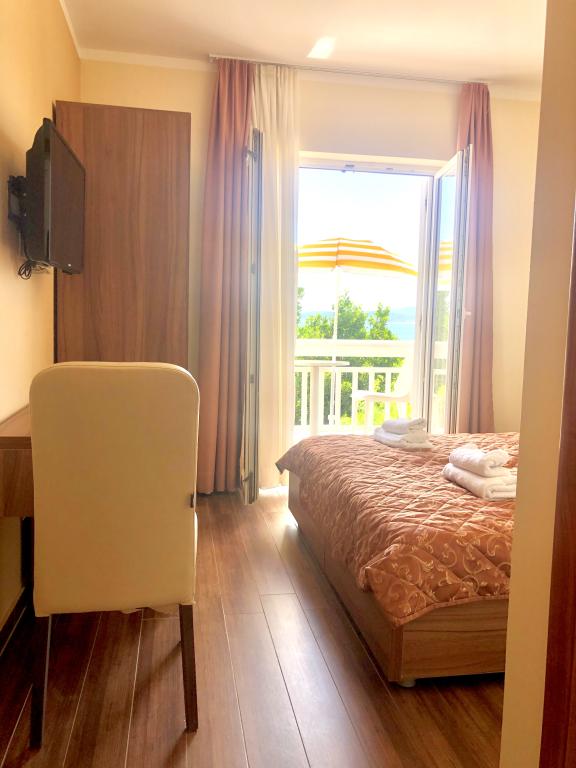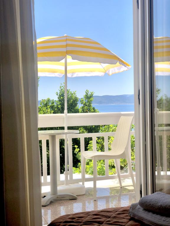 Residential tax is included in price.All rooms and apartments are tastefully furnished and each room/each apartment has its own balcony. The front of the house overlooks the sea. Smoking is prohibited in all rooms and apartments. Pets unfortunately do not have access! We have 3 double rooms, which are equipped with the following: - WiFi - Air conditioning (partially) - refrigerator - shower/toilet - NO KITCHEN We also have 4 apartments with the following options: 3 beds (2 1); twice 4 beds (2 2); 5 beds (4 1). They are equipped with: - WiFi - Air conditioning (partially) - Own complete kitchen - Living room (except apartments 8 and 10) - Shower/toilet Additional services: - Parking available at an additional cost (about 200 meters, monitored 24 hours) - If you want a cot free of charge
