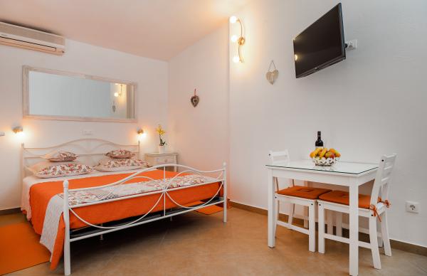 We were in a studio apartment for 2 people. The apartment is very nicely furnished with style and a touch of romance ... in a great location near the main beach. The owners are friendly and loving, and around the house is a beautiful garden and a parking space in the shade. So far, this is the nicest apartment we've been to ... and I have no comments. I hope to see you again next year.