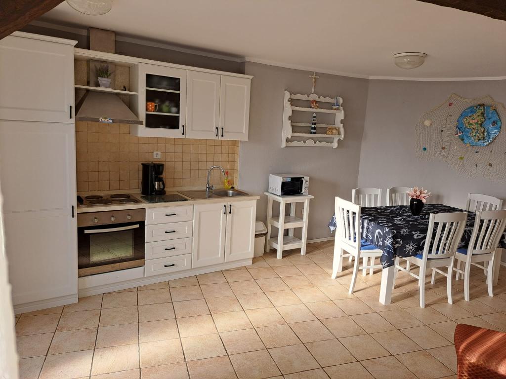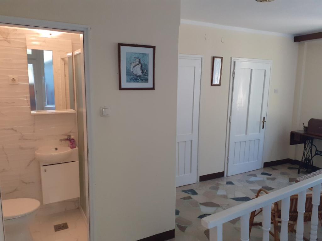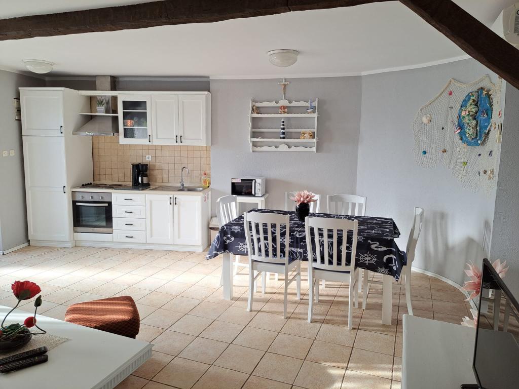 The apartment is located in the old town. The apartment has two bedrooms with double beds and an extra bed for 1 person (a sofa bed). On the ground floor there is a living room, dining room, kitchen and bathroom with separate toilet. On the first floor there are two bedrooms, toilet and shower. On the roof of the apartment there is a terrace. The apartment offers Android TV, microwave oven, washing machine, air conditioning throughout the apartment. The apartment is located first row to the sea. The apartment is 70 m from the beach, which our guests like to use. You have a parking space for two cars 300m from the apartment. Traffic is prohibited in that part of the town.