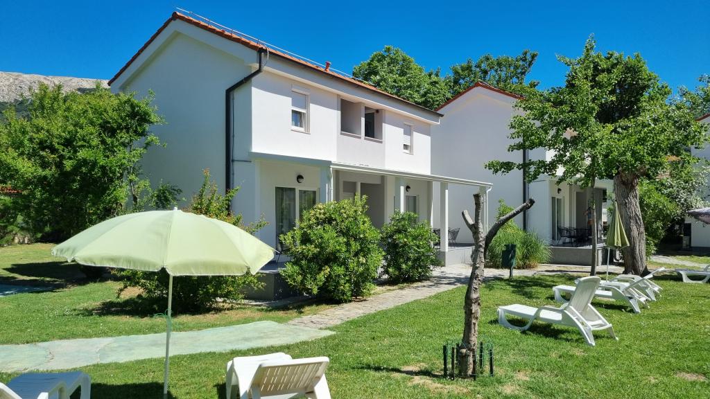 Villa Corinthia is located in an attractive location, just a few minutes walk from the famous Vela Plaža beach in Baška. The Villa Corinthia tourist complex consists of 10 detached villas, each of which contains two practically furnished apartments. The apartments are located on 2 floors. On the ground floor of the building there is a kitchen with a living room and a terrace, on the first floor there is a bedroom, bathroom and a balcony. Villa Corinthia guests have at their disposal an outdoor area surrounded by greenery with barbecue areas and a shared laundry room. Air-conditioned apartments, equipped with Internet (Wi-Fi), satellite TV and a safe. Pets are welcome (for a fee). Private parking (for a fee).