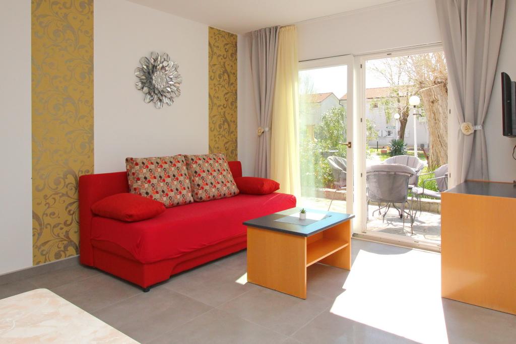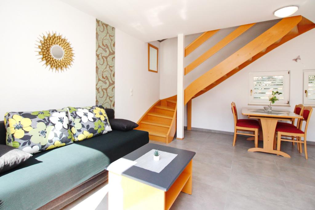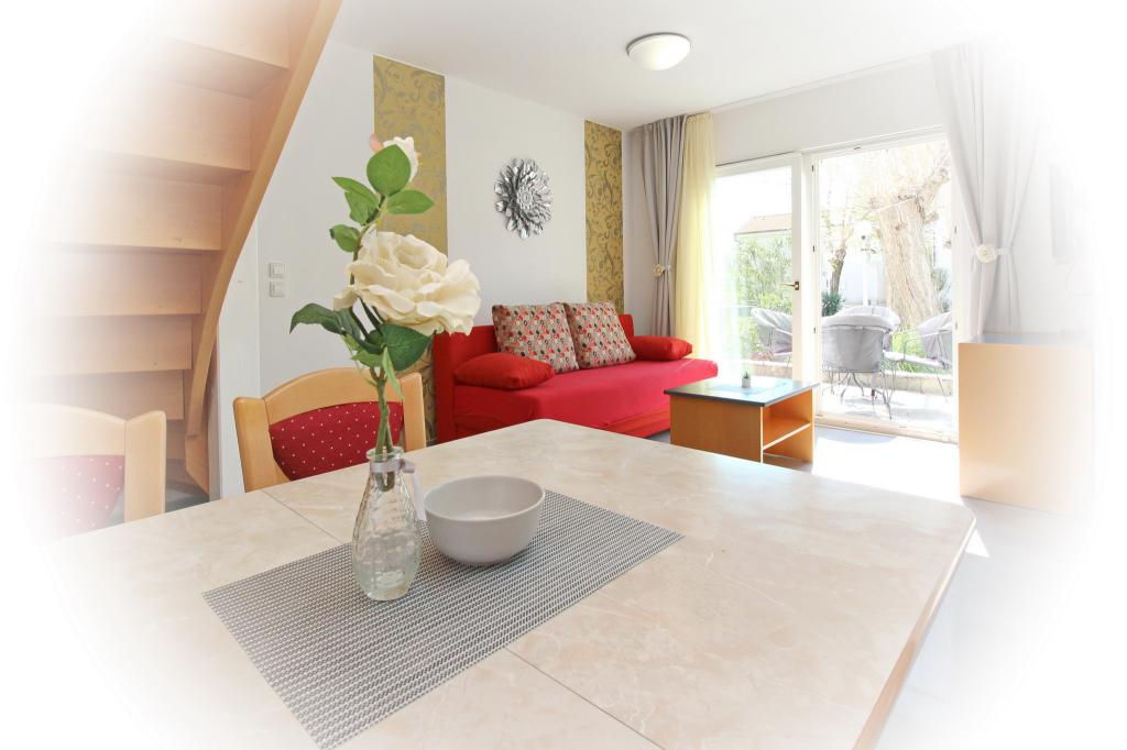 Read more Accommodation unitsPlease note that reservations can be made for a minimum of 4 nights from 01.04.-19.06., for a minimum of 7 nights from 20.06.-04.09., with arrival/departure on SATURDAY or SUNDAY, and for a minimum of 4 nights from 05.09.-06.10.. Prices will be displayed when you enter the desired date of stay and number of people. You can see the prices by season under the € price list (on the right, below the pictures of the desired accommodation unit). Additional costs: tourist tax (adults 2.20 EUR/person/night; children 12-18 years 1.10 EUR/person/night), registration (5 EUR/person/one-time) and (parking 3 EUR/car/day) Pets - allowed - on request - (15 EUR/pet/night) For a fixed reservation, a deposit (via bank transfer) of 30% of the total price of the apartment is required. The rest of the accommodation fee, tax, registration and parking are payable upon arrival. Check-in is after 2 pm, check-out is until 10 am.
