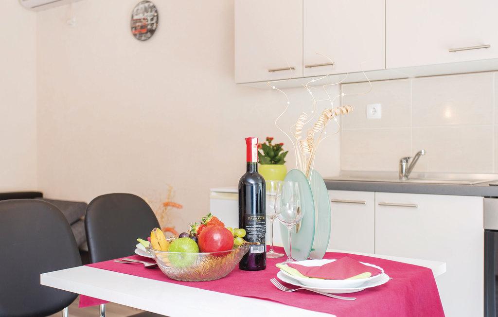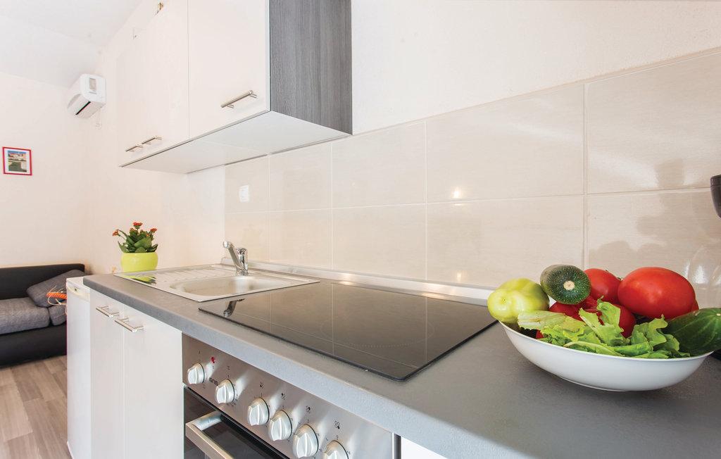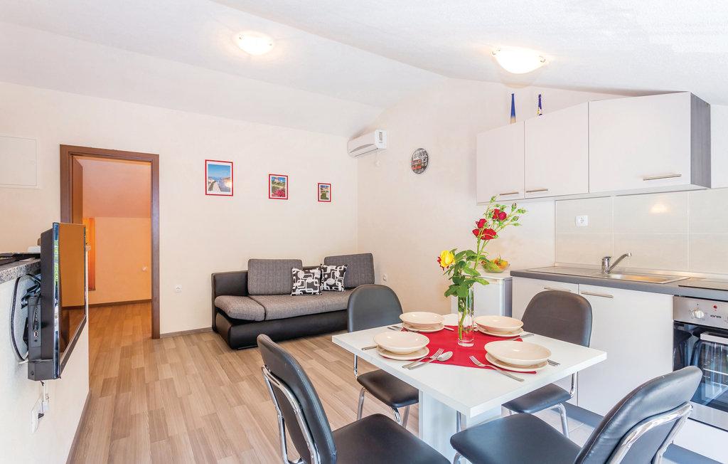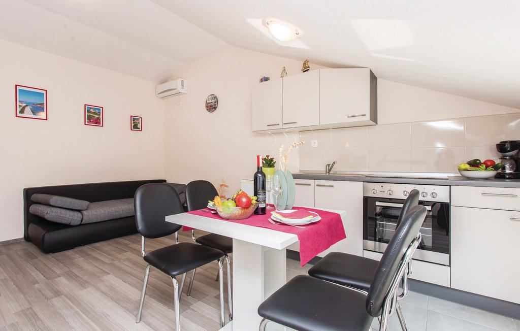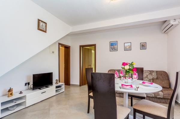 The apartment is in the top location for us with a dog. Outside the center and yet easily accessible by bike or car to the beach. Very friendly and warm hosts. The size of the apartment was also totally ok for us and we always love to come back. The apartment was very clean. Small well equipped kitchen. We also had air conditioning. The pool is cleaned every day. It was wonderful with the Besic family and we look forward to seeing you again.