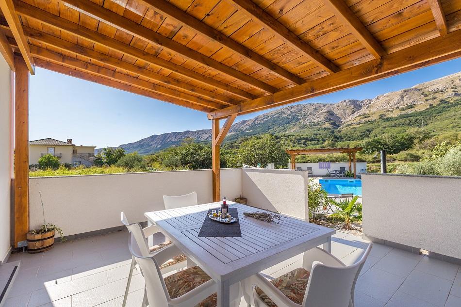We've stayed with Tania and her husband twice now. The apartment is clean, comfortable, and air-conditioned, with a beautiful, large terrace where you can relax, read books in the evenings, and gaze at the sky. A hairdryer, iron, and towel service are available in the apartment. The pool is clean and perfect for relaxing; the kids loved swimming in it. The area is quiet, with views of the beautiful mountains. It's close to Baška, with its beautiful beaches, and you can also explore other charming beaches. We had a wonderful time. And above all, Tania and her husband are very hospitable, helpful, and kind! We highly recommend them.