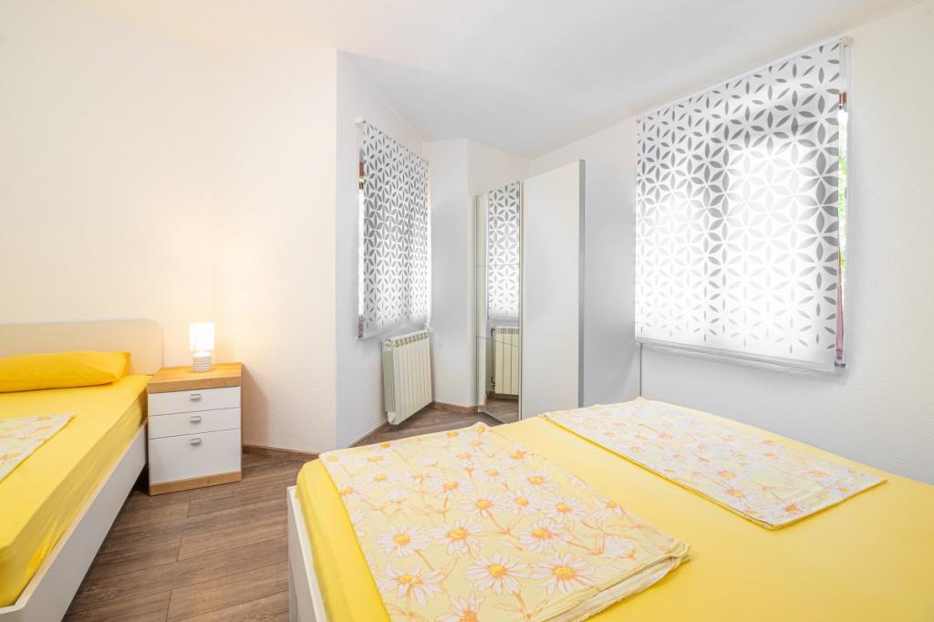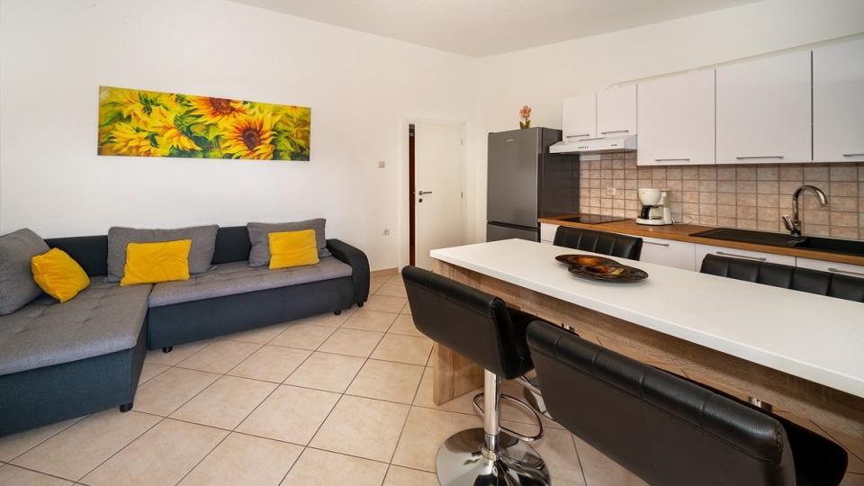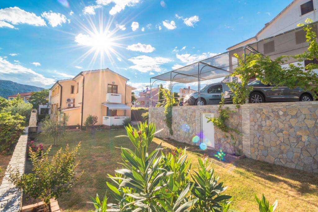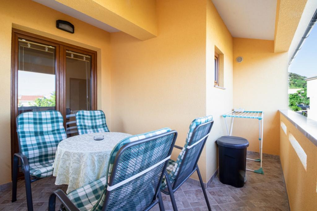 Apartment in a quiet part of Baška on the island of Krk, the facility is located 400 meters from the beach and 200 meters from the center. It has a terrace overlooking the sea. The wi-fi is included in the rental price. covered parking and air conditioning.