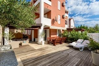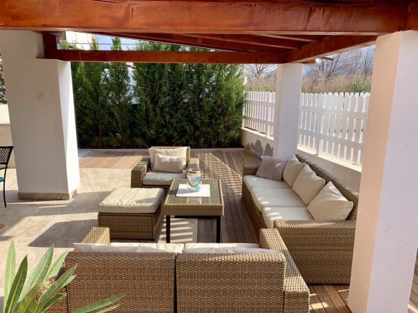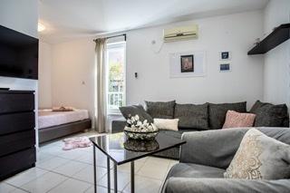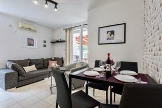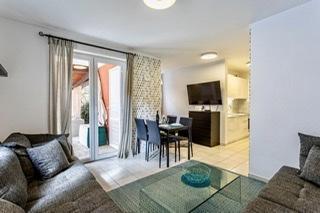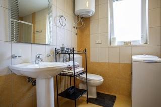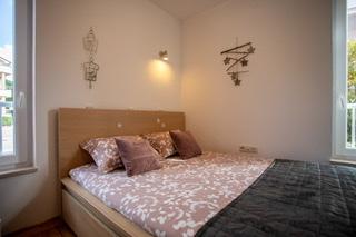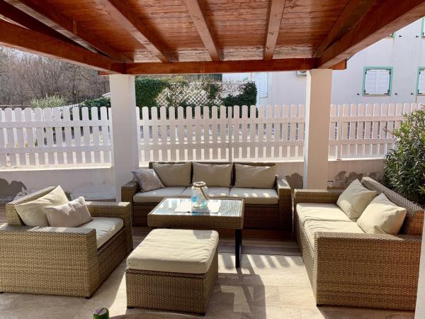 Modernly decorated and fully equipped apartment with a large terrace and garden. It is located in Baška, the most popular summer resort on the island of Krk, known for its most beautiful sandy beach. The apartment is located in a quiet street only 400 m from the main Bašča beach - Vela beach, all restaurants, cafes, and a promenade that surrounds the 3 km long beach. The apartment consists of a kitchen equipped with a hob, oven, refrigerator, necessary dishes, kettle, toaster, filter coffee machine. The bedroom is equipped with a 160x200 bed and a wardrobe. Bathroom with shower cabin. The living room is equipped with a TV, a satellite dish, a large sofa and a dining table. The second bed, size 160x200, is located in the living room. The apartment is air-conditioned and has unlimited WIFI. The terrace is equipped with garden furniture, and in the garden you can enjoy relaxing on the garden deckchairs and soaking up the sun's rays. In front of the building, 1 parking space per apartment is provided.