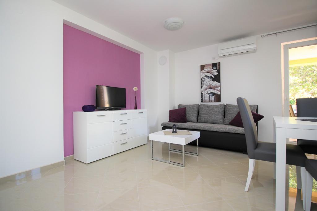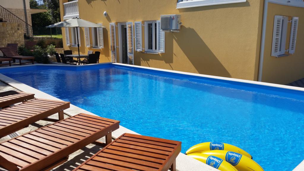 Modernly furnished apartments, just a 5-minute walk from the beautiful Vela Beach, with a shared outdoor pool and barbecue. The house has 9 apartments equipped with a dishwasher, washing machine, safe, air conditioning, Internet and SAT-TV. Each apartment has one parking space. Pets are not welcome.