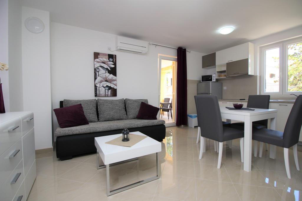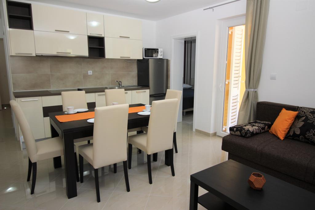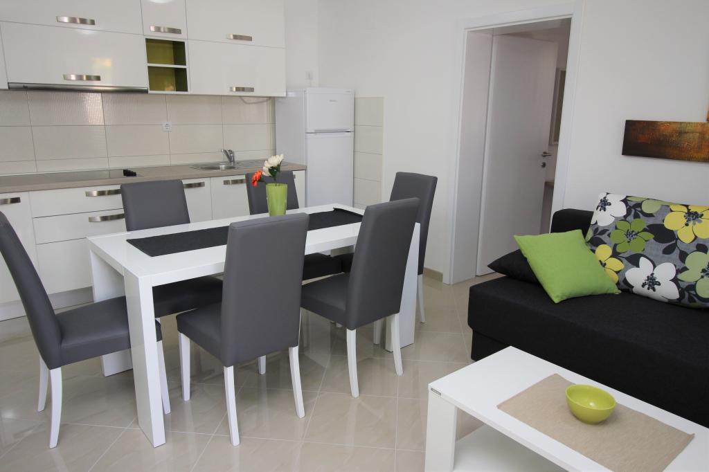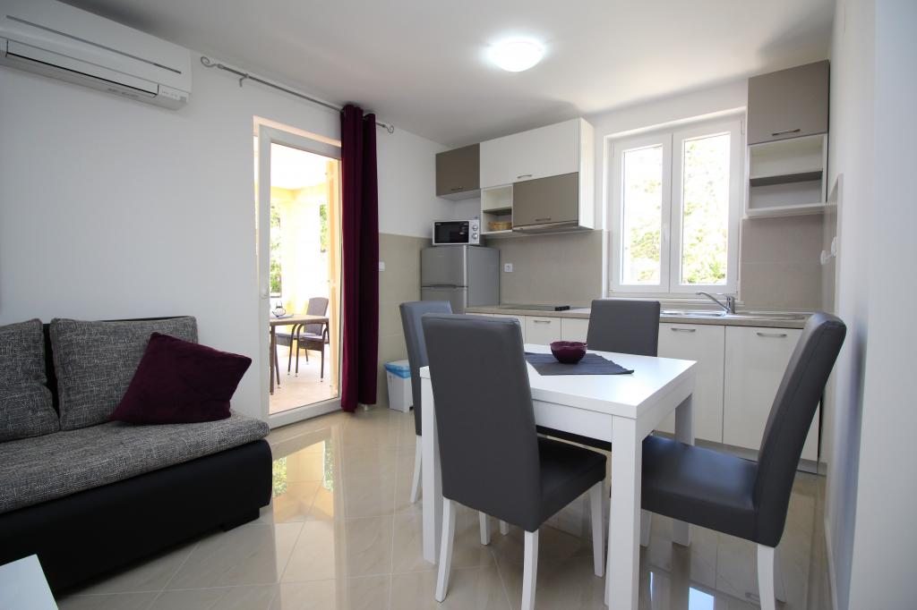 Accommodation unitsPlease note that reservations can be made for a minimum of 4 nights from 01.04.-20.06., for a minimum of 7 nights from 21.06.-05.09., and for a minimum of 4 nights from 06.09.-06.10. Prices will be displayed when you enter the desired period of stay and number of people. Prices by season can be seen under the € price list (on the right, under the pictures of the desired accommodation unit). Additional costs: tourist tax (adults 2.20 EUR/person/night; children 12-18 years 1.10 EUR/person/night) and registration fee (5 EUR/person/one-time). For a fixed reservation, a deposit of 30% of the total price of the apartment must be paid (via bank transfer). The remaining amount of accommodation, tax and registration fee is payable upon arrival. Check-in to the apartment is possible after 2 pm, departure is by 10 am.