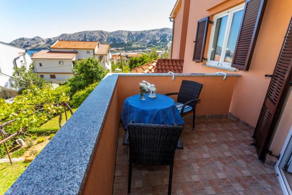 The apartments are located in a quiet part of Baska. Widely known bašćanska sandy beach is only 200 m. The store is located 100 m and restaurants 200 m. In addition to swimming on the beautiful beach and the nearby smaller beaches, there is a possibility hiking and biking on well marked trails. In the garden secured parking for each apartment and a barbecue. We wish you a pleasant stay in our apartments.