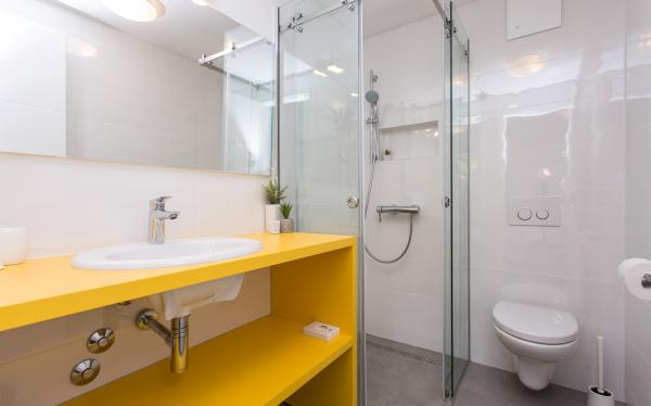 Apartments Klemencic are located in the quiet part of Baška (Zarok), only two hundred meters from one of the most beautiful beaches of the northern Adriatic, and a 15-minute walk from the old Baska Basilica. We can offer 4 apartments: 2 x A4 / 2 and 2 x A2 / 2. All apartments have a fully equipped kitchen, TV SAT, air conditioning and free Wi-Fi (WiFi). Parking spaces are provided in the yard of the building. We are happy that we can offer you from our summer of 2016 our fourth apartment on the ground floor of our house. New apartment A4 / 2 (ID: 49605) consists of 2 bedrooms, 2 bathrooms, kitchen and living room with additional bed for two more persons. Has a dishwasher, a washing machine,. . Extra bed possibility - folding bed on mattress castors that can be brought to the apartment. It can be used for the 5th person in apartments A2 / 2 or for the 7th person in apartment A4 / 2. Guests can get use of a cot (on request), a children's seat / crib (on request) and a baby crib (on request)